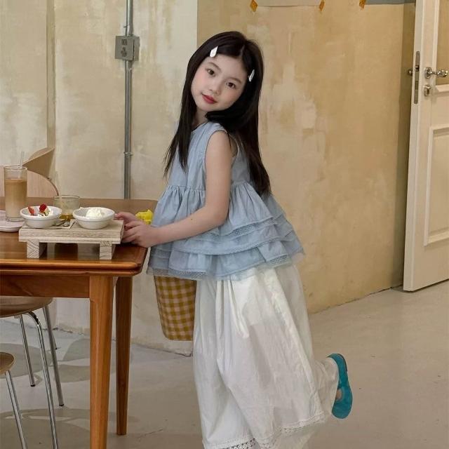 新品 含發票 女童闊腿褲套裝2025夏裝新款洋氣女寶寶娃娃衫上衣兒童寬松闊腿褲