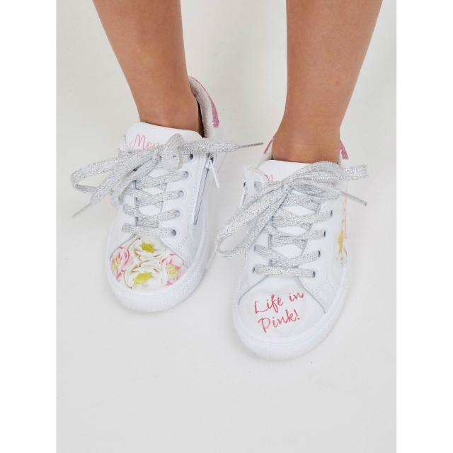 義大利MONNALISA蒙娜麗莎精品童裝童鞋浪漫花卉圖案牛皮網球鞋