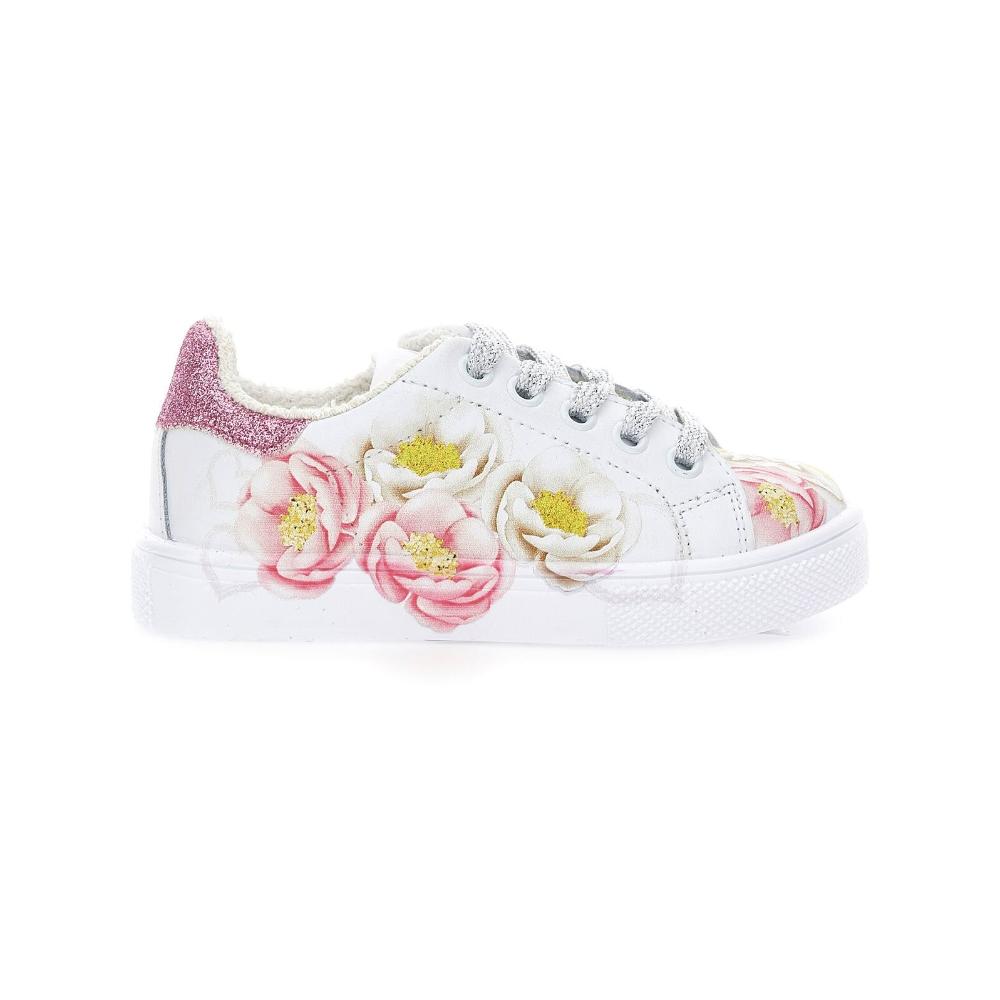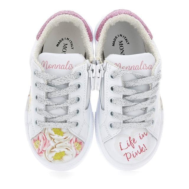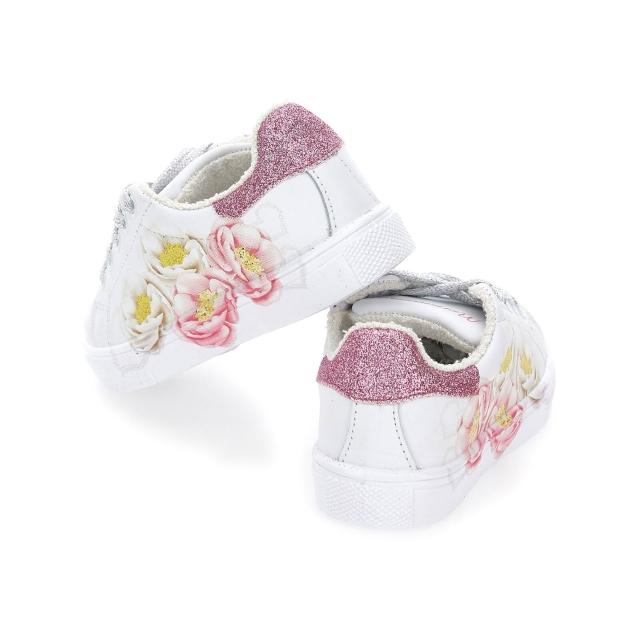 義大利MONNALISA蒙娜麗莎精品童裝童鞋浪漫花卉圖案牛皮網球鞋