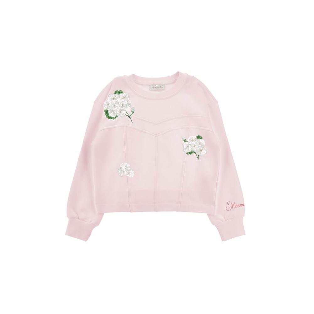義大利MONNALISA蒙娜麗莎精品童裝 粉紅色花卉刺繡運動休閒衫