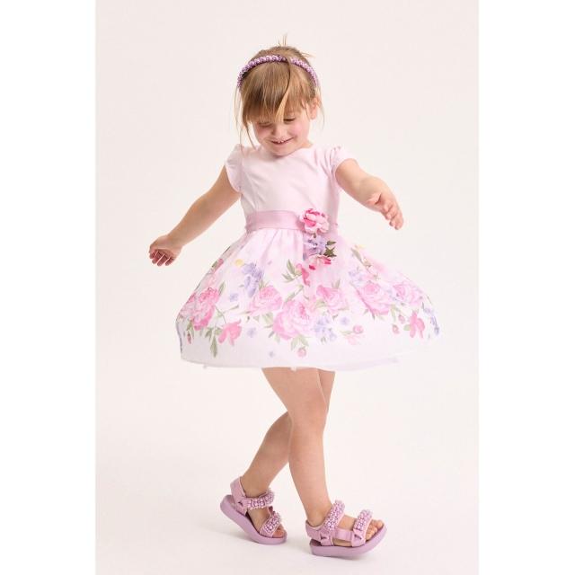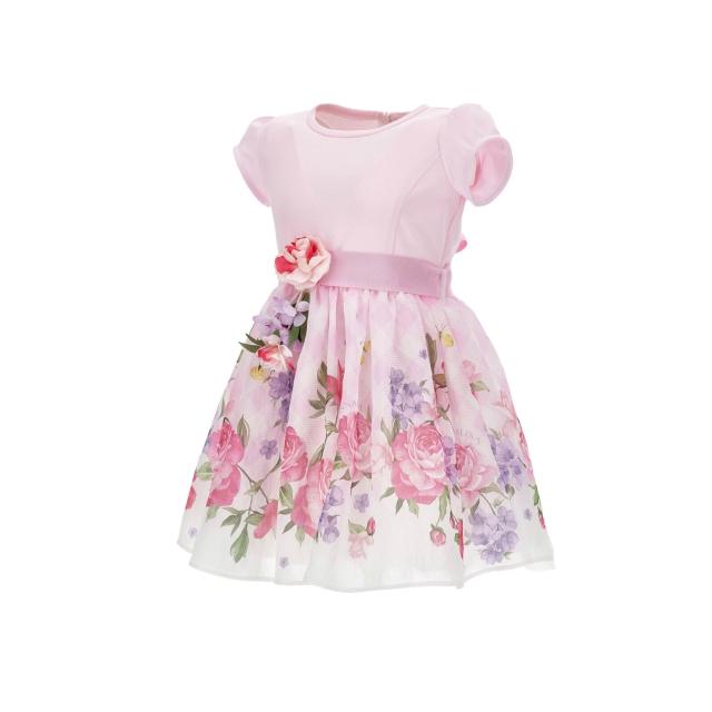 義大利MONNALISA蒙娜麗莎精品童裝 粉紅連身玫瑰花裙