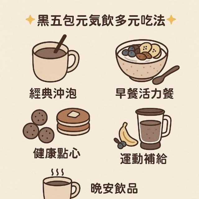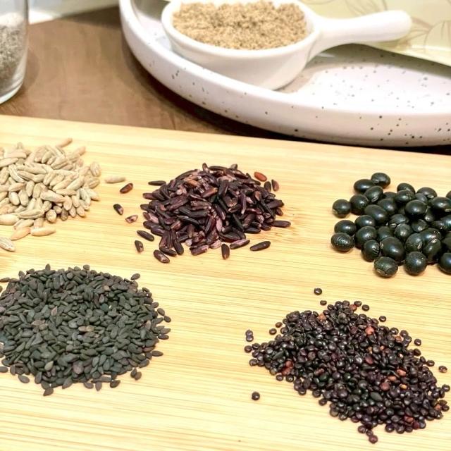黑5寶元氣飲 「五黑合一,天然黑色能量」~集結台灣黑豆、黑米、黑芝麻粉、黑藜麥、黑麥,成就一杯每日元氣飲。