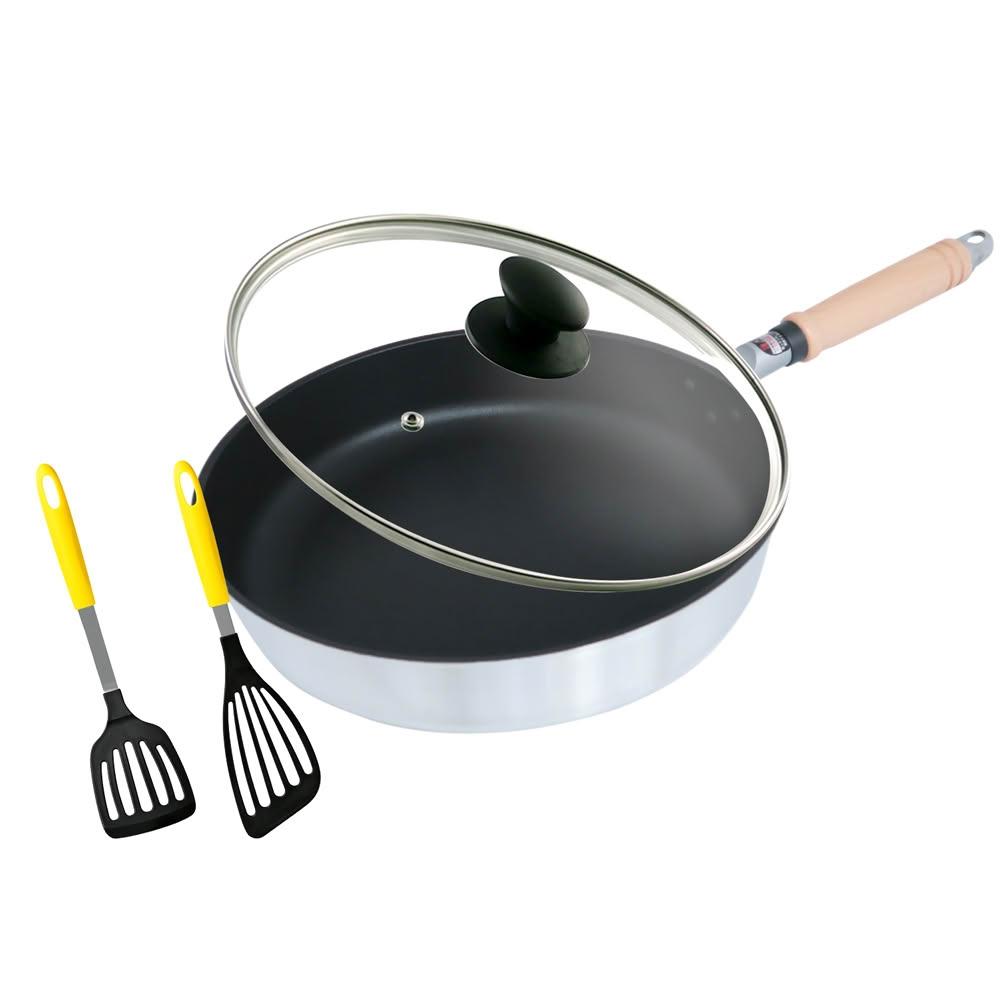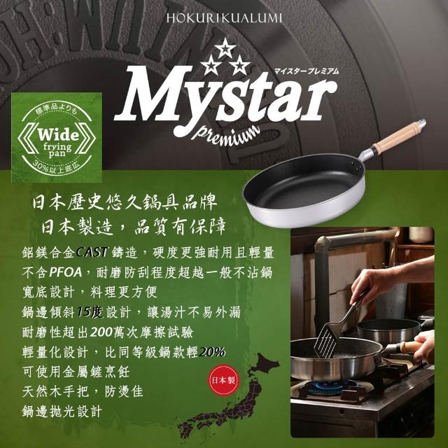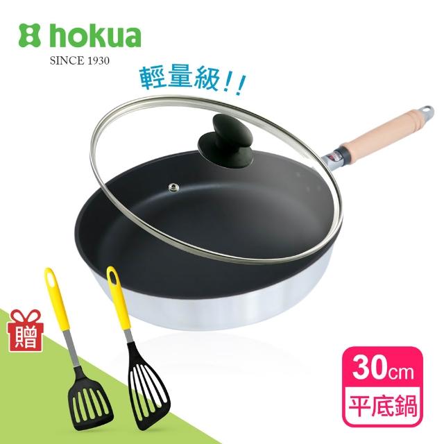 hokua 北陸鍋具日本製Mystar輕量級不沾黑金鋼平底鍋30cm套組(玻璃蓋+廚具2件組)可用金屬鏟