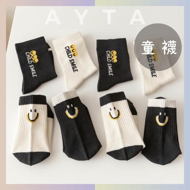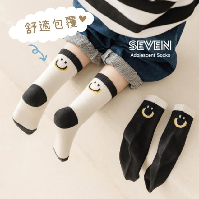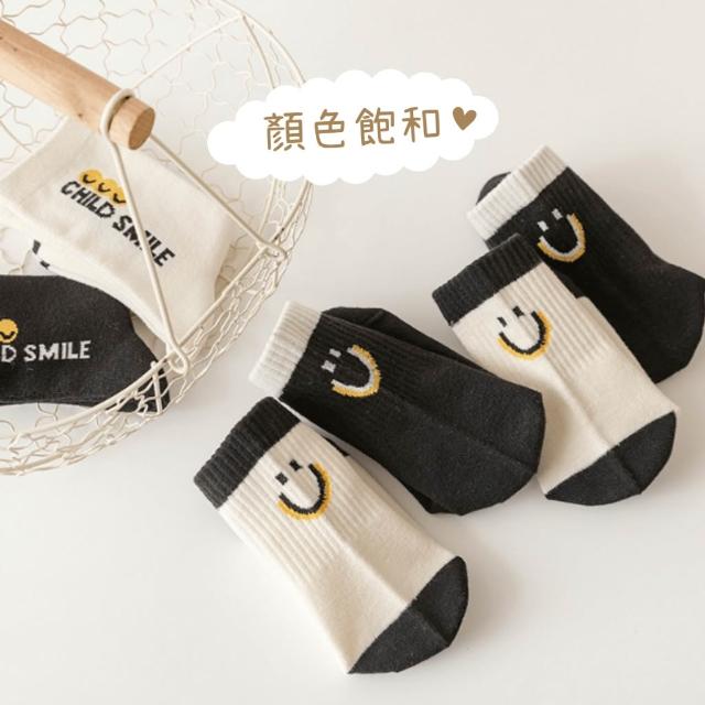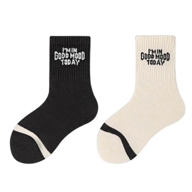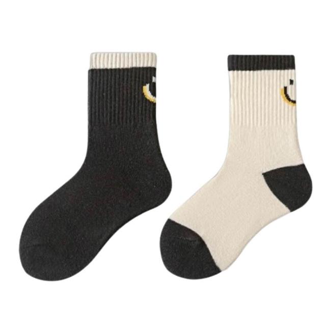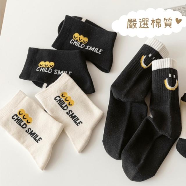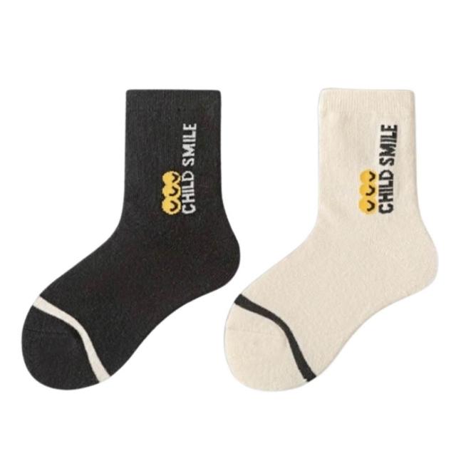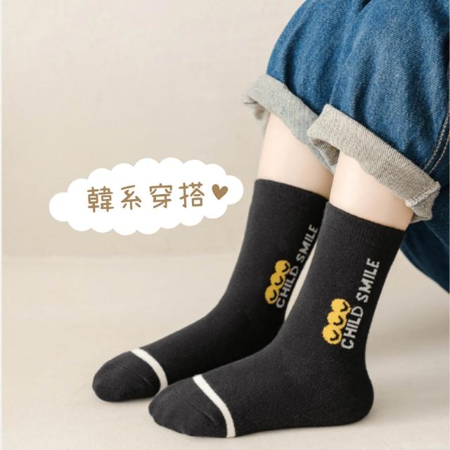 潮流英文笑臉純棉中筒童襪|6-15歲 適用腳長18-26cm|韓國襪子|四季可穿|男童 女童 男襪 女襪