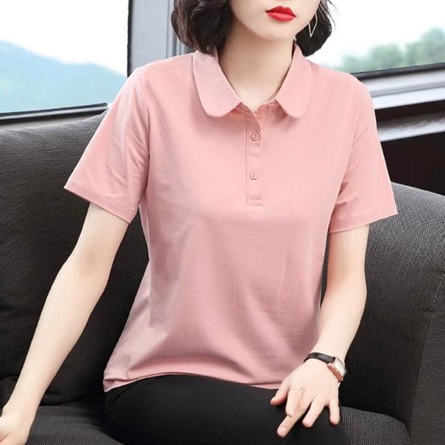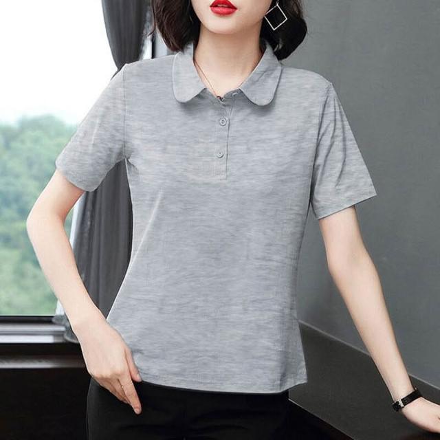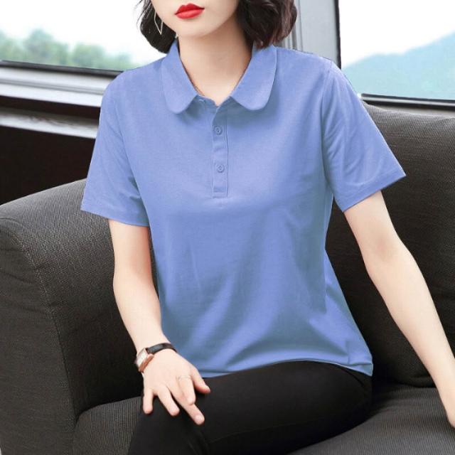 中年媽媽夏裝寬松遮肚POLO衫洋氣小衫有領上衣翻領純棉短袖T恤女