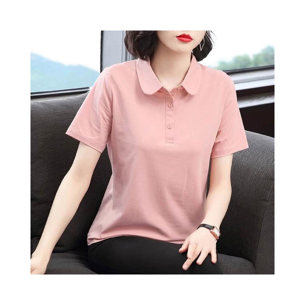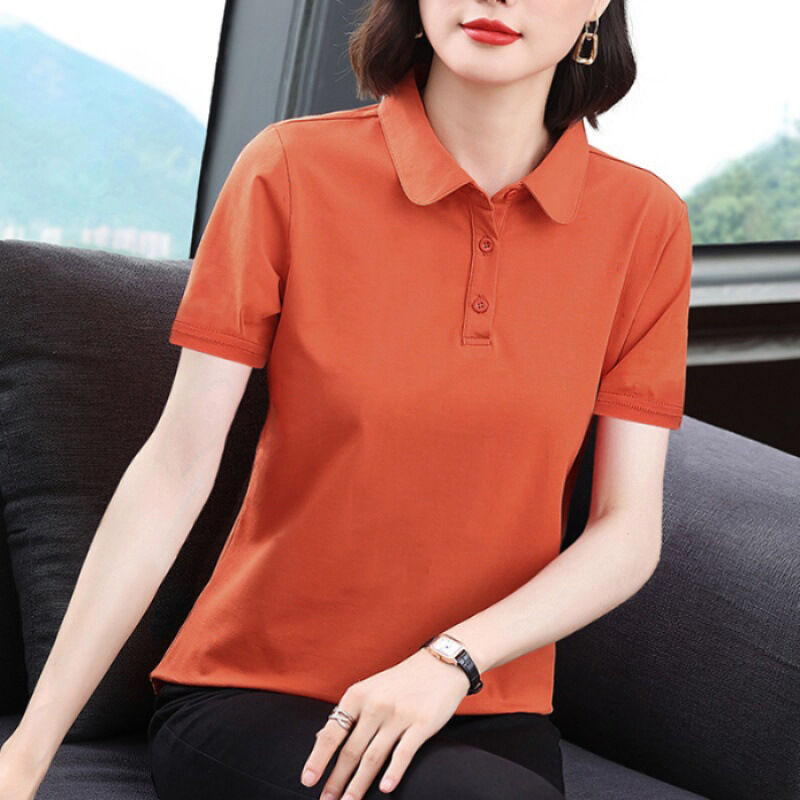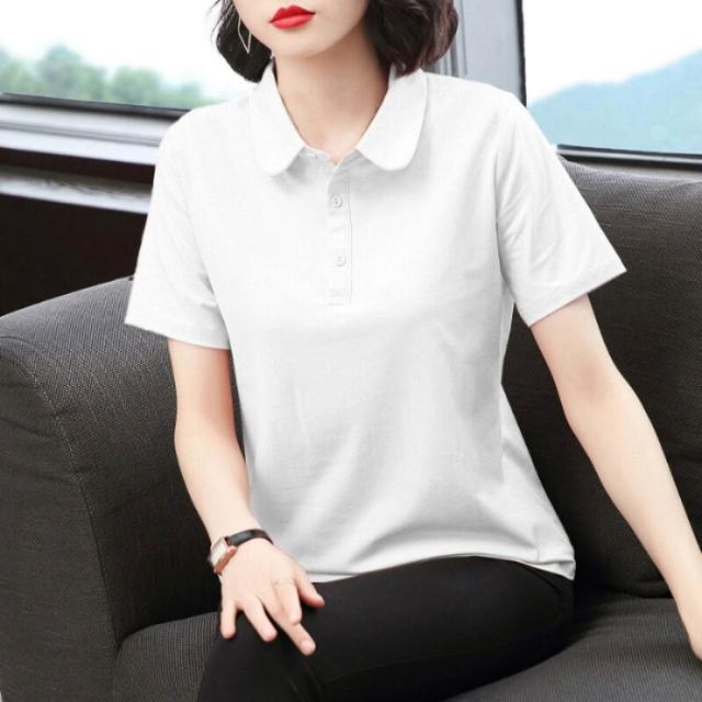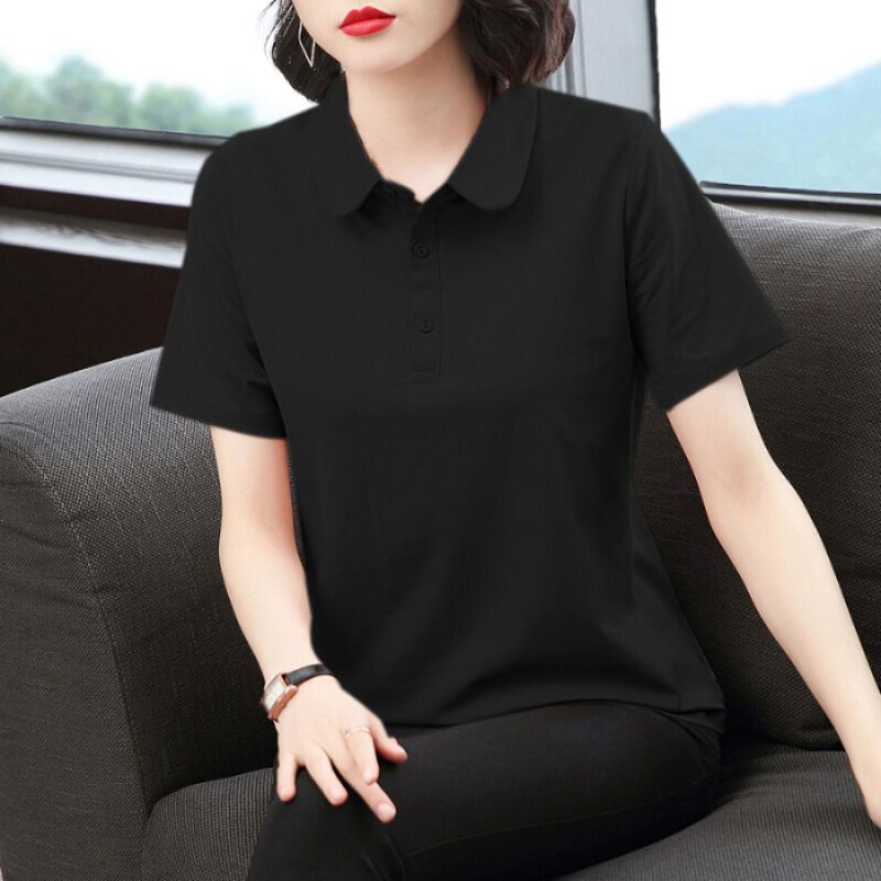 中年媽媽夏裝寬松遮肚POLO衫洋氣小衫有領上衣翻領純棉短袖T恤女