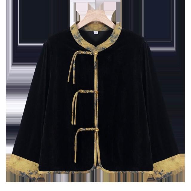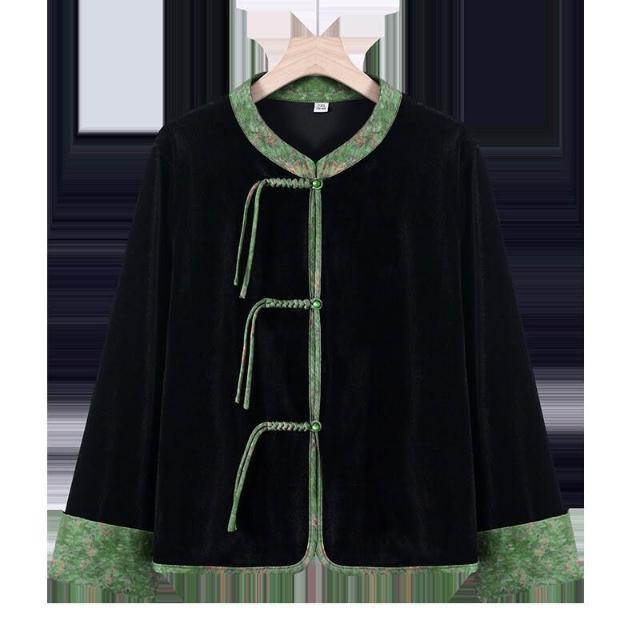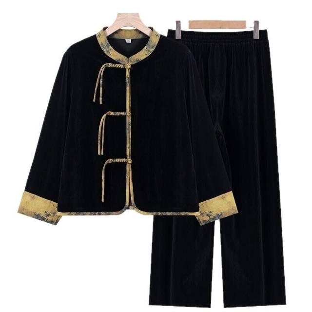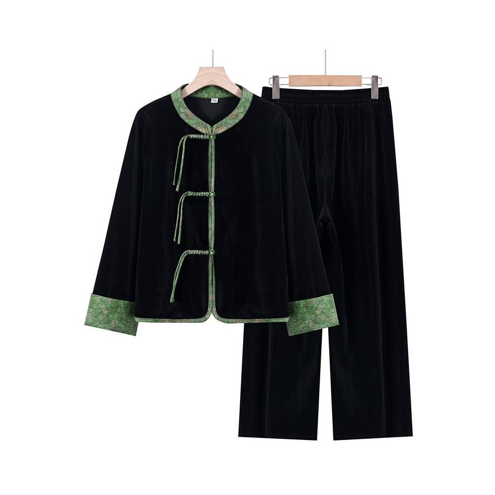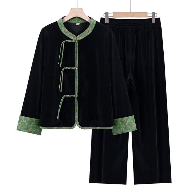 媽媽春秋金絲絨時尚套裝女洋氣中老年人秋裝新中式盤扣上衣兩件套