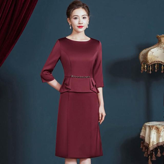 秋裝新款高貴氣質婚禮喜婆婆禮服中年大碼媽媽裝連衣裙女