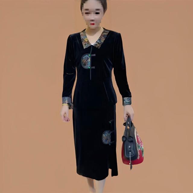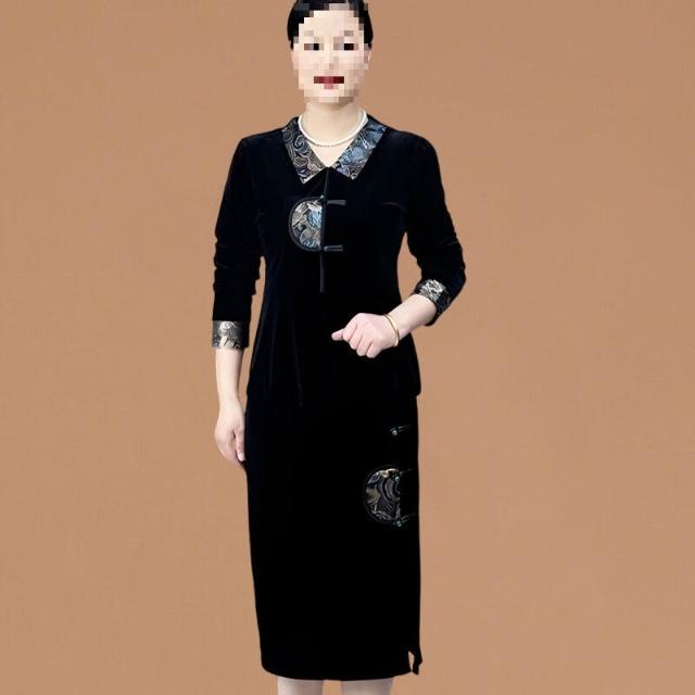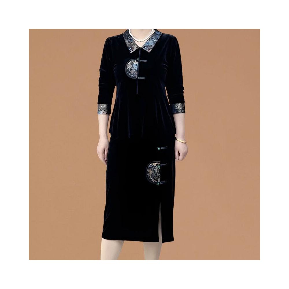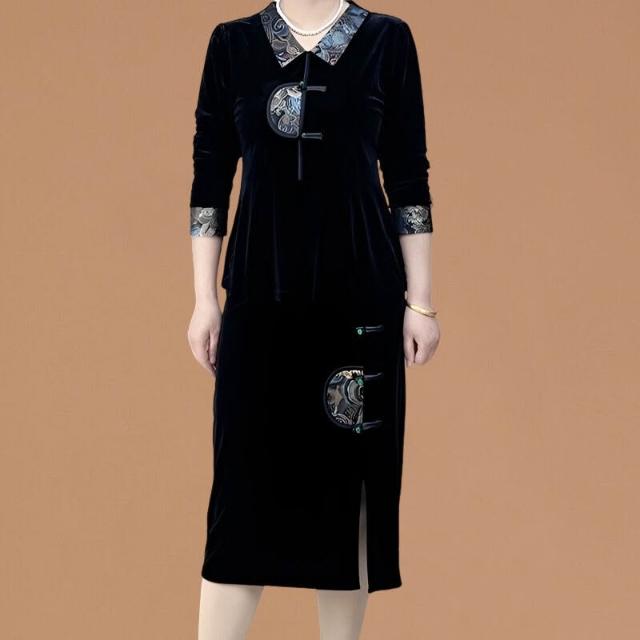 中年媽媽春季連衣裙新款洋氣質中式國風金絲絨兩件套裙子