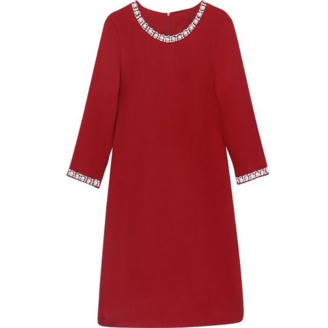 小個子紅色連衣裙2025年秋季新款女喜婆婆婚宴裝禮服中年媽媽洋氣