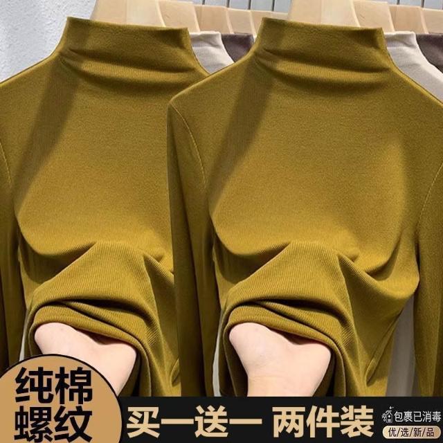 單/兩件裝螺紋半高領純棉打底衫女秋冬新款內搭修身長袖T恤女上衣