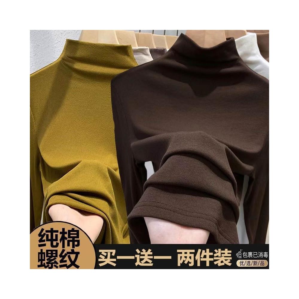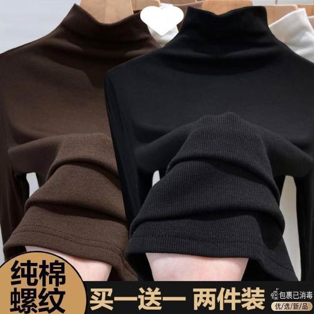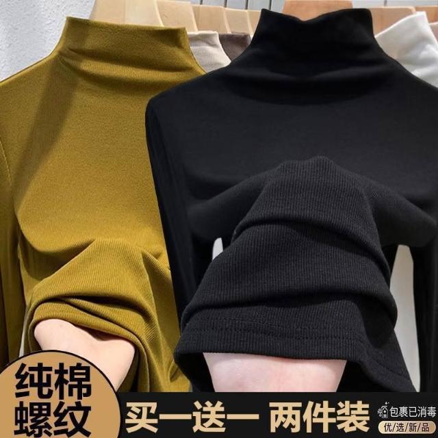 單/兩件裝螺紋半高領純棉打底衫女秋冬新款內搭修身長袖T恤女上衣