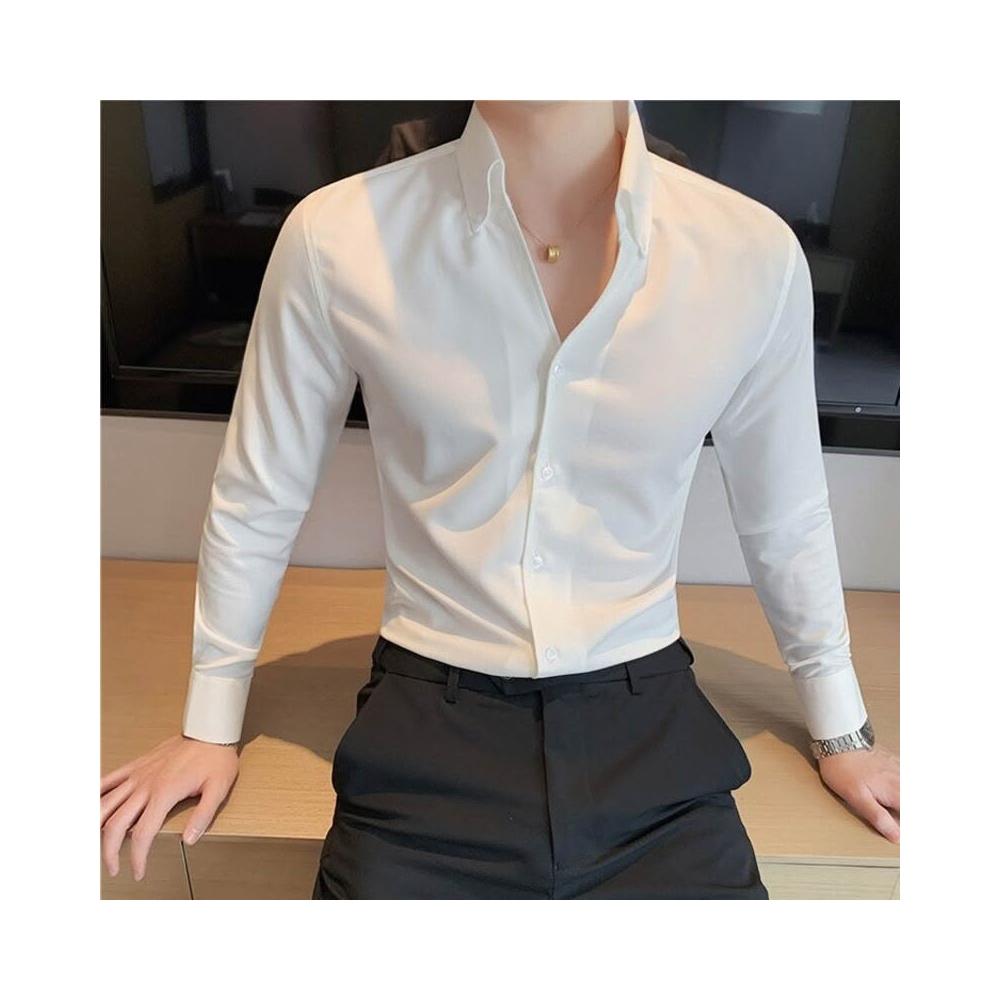 網紅大V領襯衫男長袖商務正裝潮流輕奢免燙休閑立領痞帥襯衣白色