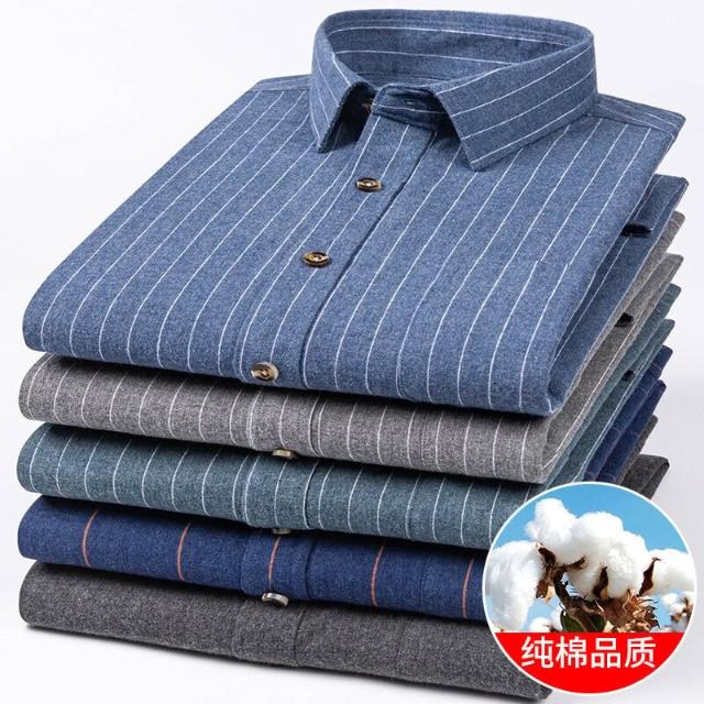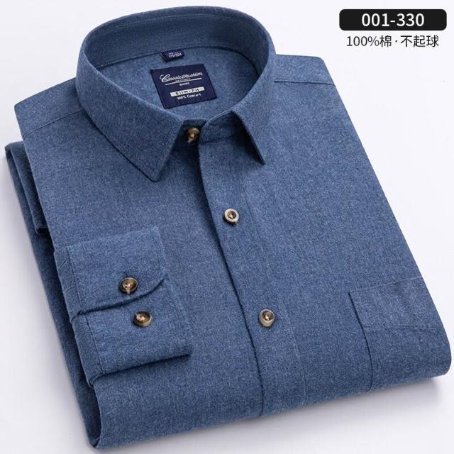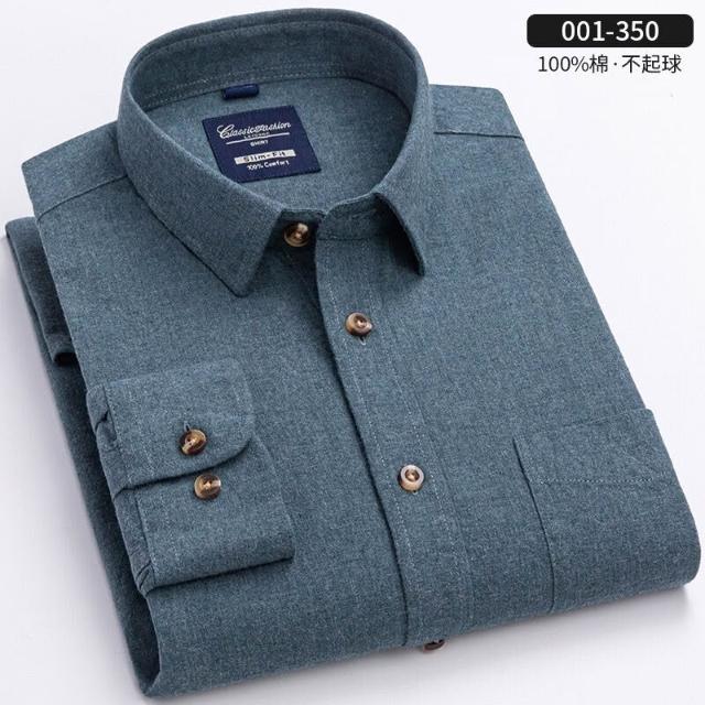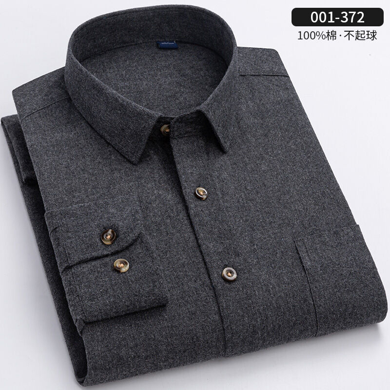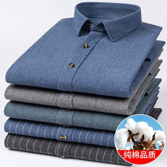 純棉色紡磨毛襯衫秋冬新款男士加厚長袖襯衫青年商務休閑純色襯衣