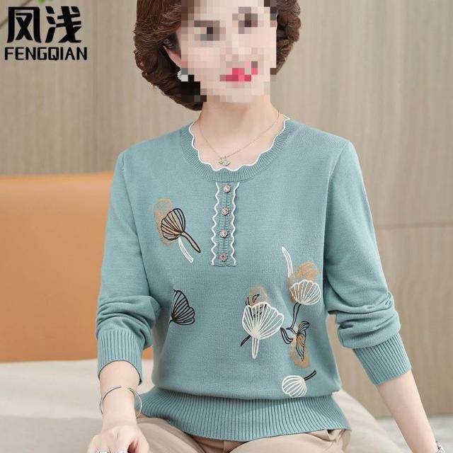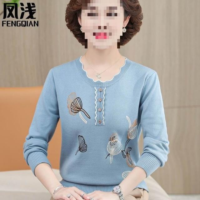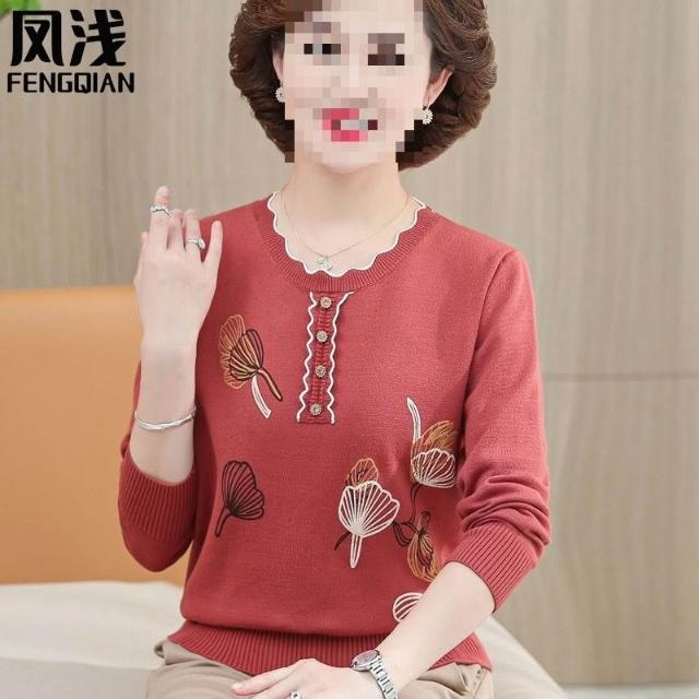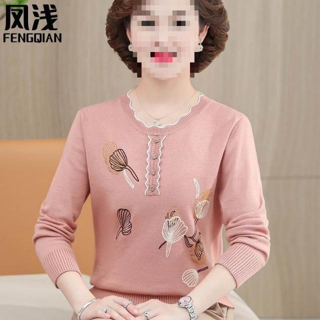 中老年女裝春秋長袖上衣媽媽裝毛衣薄款打底衫中年大碼針織羊毛衫