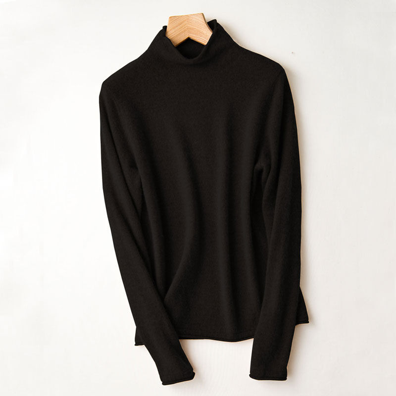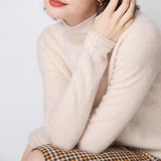 半高領卷邊羊毛衫女100 全羊毛針織衫2024秋冬季洋氣打底羊絨毛衣