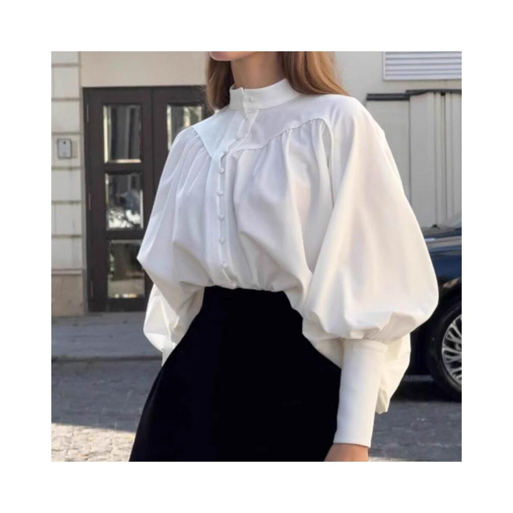 法式時尚氣質白色立領燈籠袖襯衫2025秋季宮廷風女式長袖上衣女裝