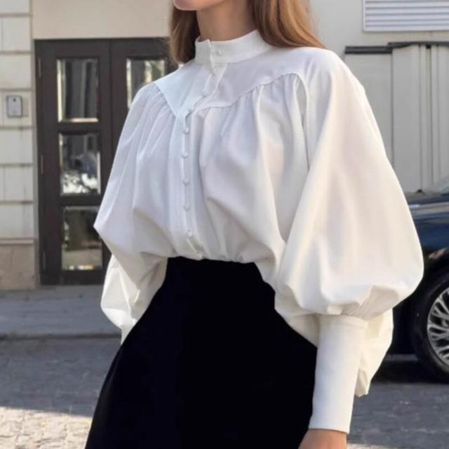 法式時尚氣質白色立領燈籠袖襯衫2025秋季宮廷風女式長袖上衣女裝