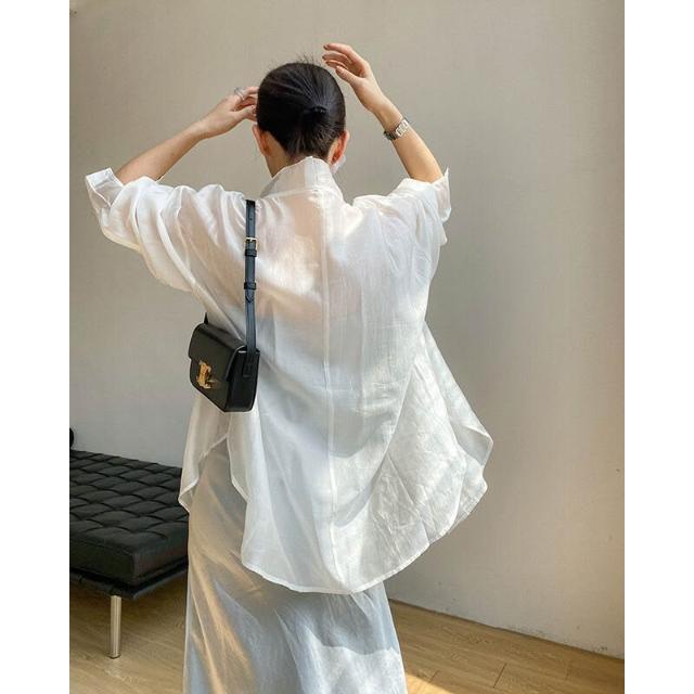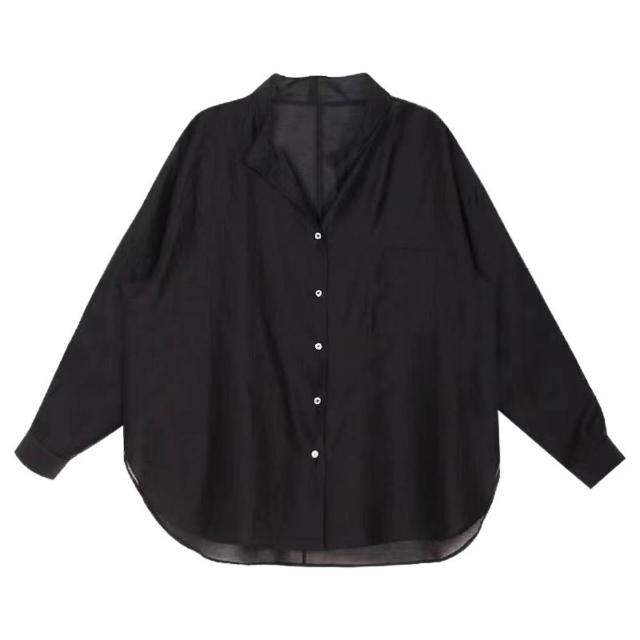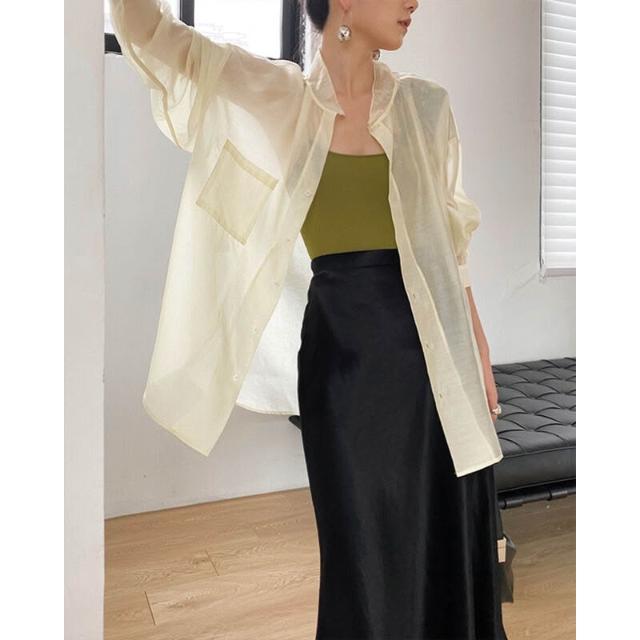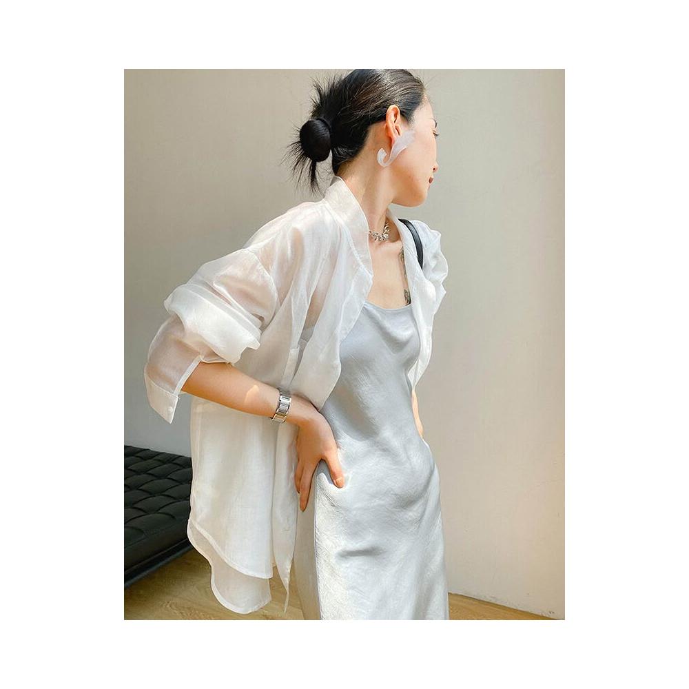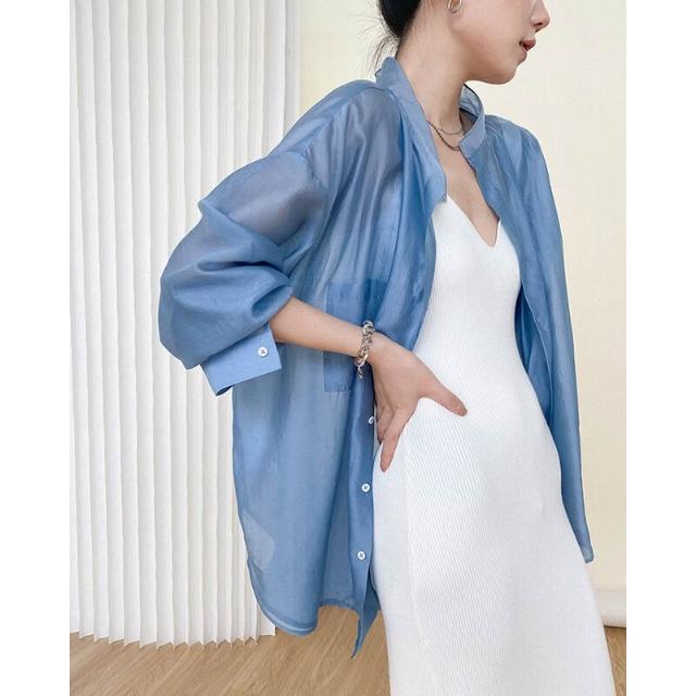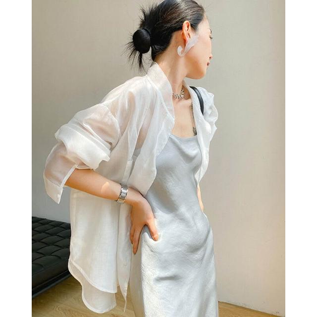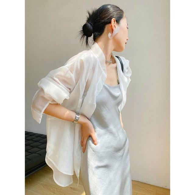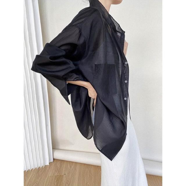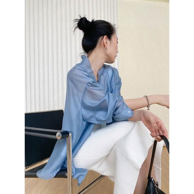 時尚天絲款上調衫微透防紫外線寬松襯衣冰絲防曬襯衫外套女潮