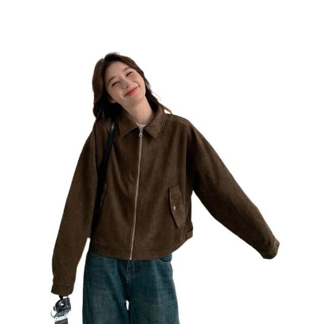 咖色美拉德仿麂皮絨外套女2025秋新款美式小個子短款夾克上衣