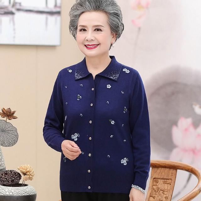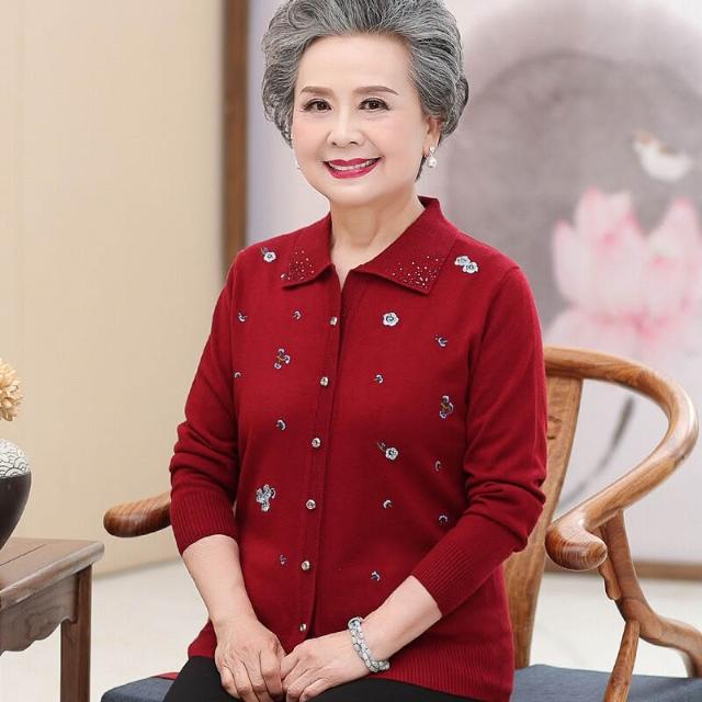 中老年人春裝女媽媽薄款外套春秋季上衣服奶奶裝太太針織開衫