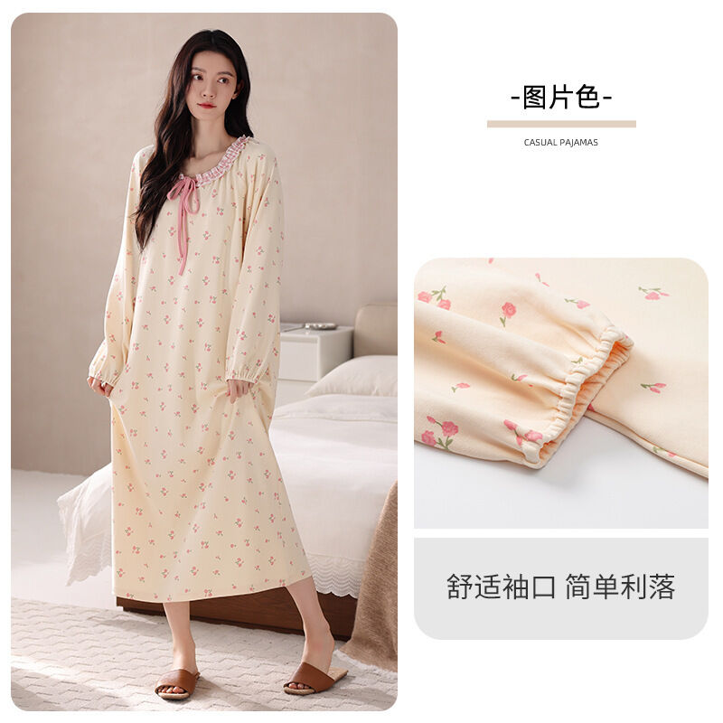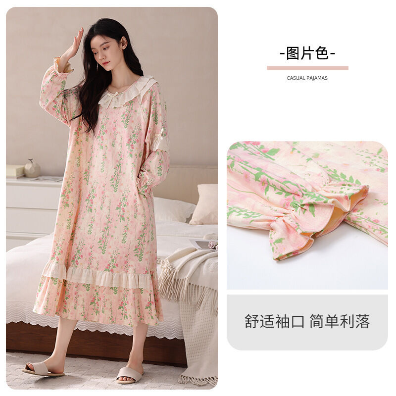 純棉女士睡裙春秋季長袖睡衣中長裙2025新款甜美寬松可外穿家居服