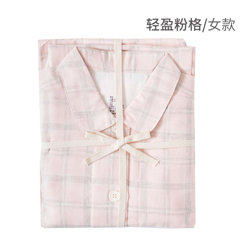 雙層紗睡衣 無印無側縫日式良品格子小點 春夏新款情侶家居服套裝