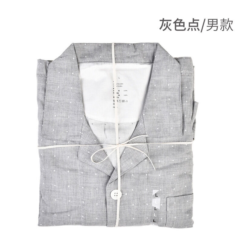 雙層紗睡衣 無印無側縫日式良品格子小點 春夏新款情侶家居服套裝