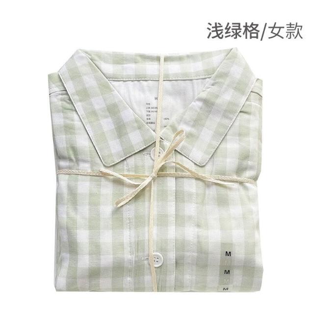 雙層紗睡衣 無印無側縫日式良品格子小點 春夏新款情侶家居服套裝