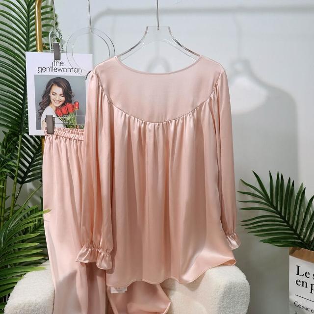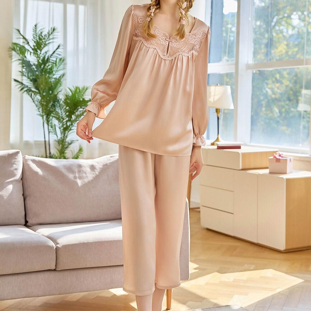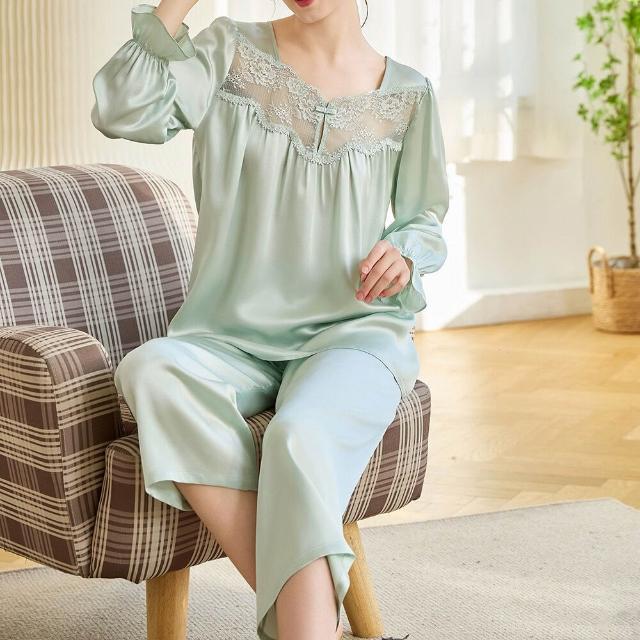 春秋新款真絲睡衣套裝性感蕾絲邊桑蠶絲家居服女士母親節禮物