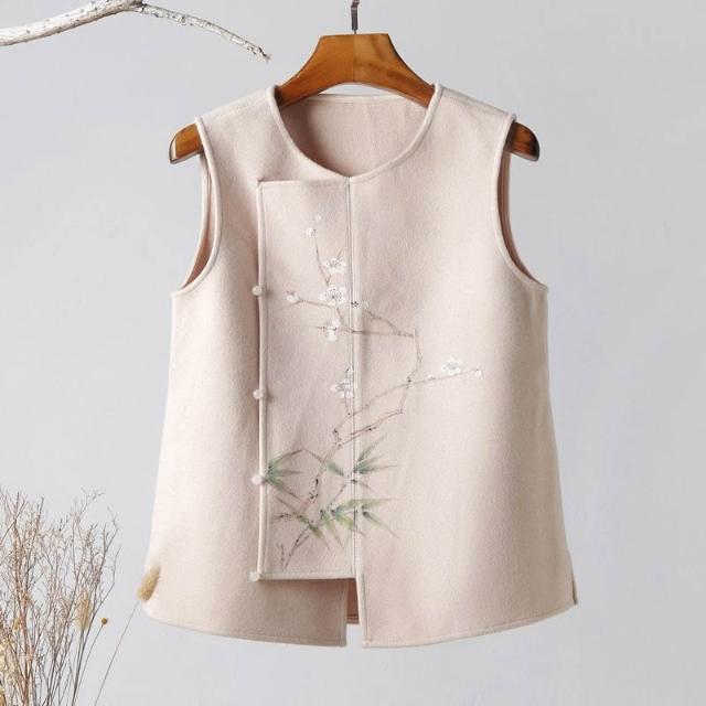 氣質國風馬甲女中式復古秋冬新款中式高級感毛呢背心古風無袖上衣