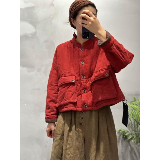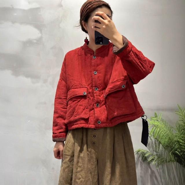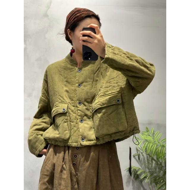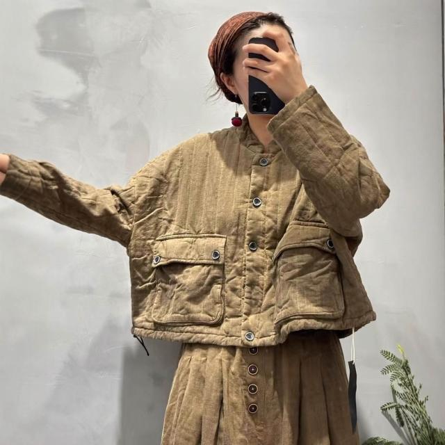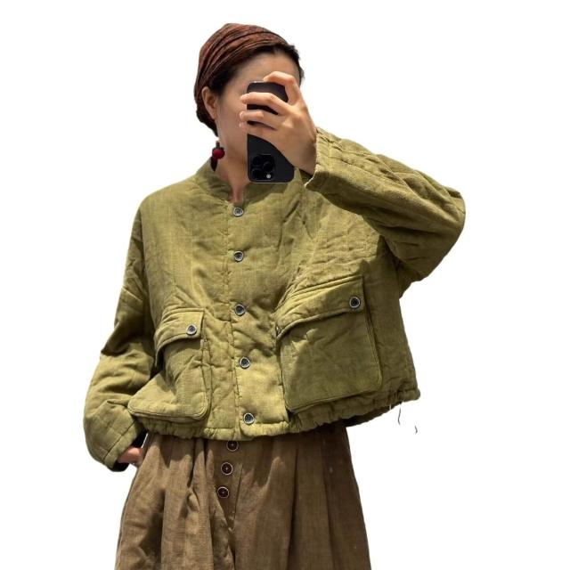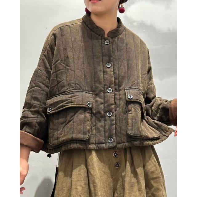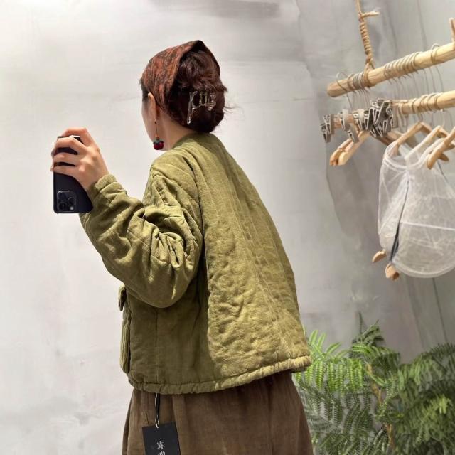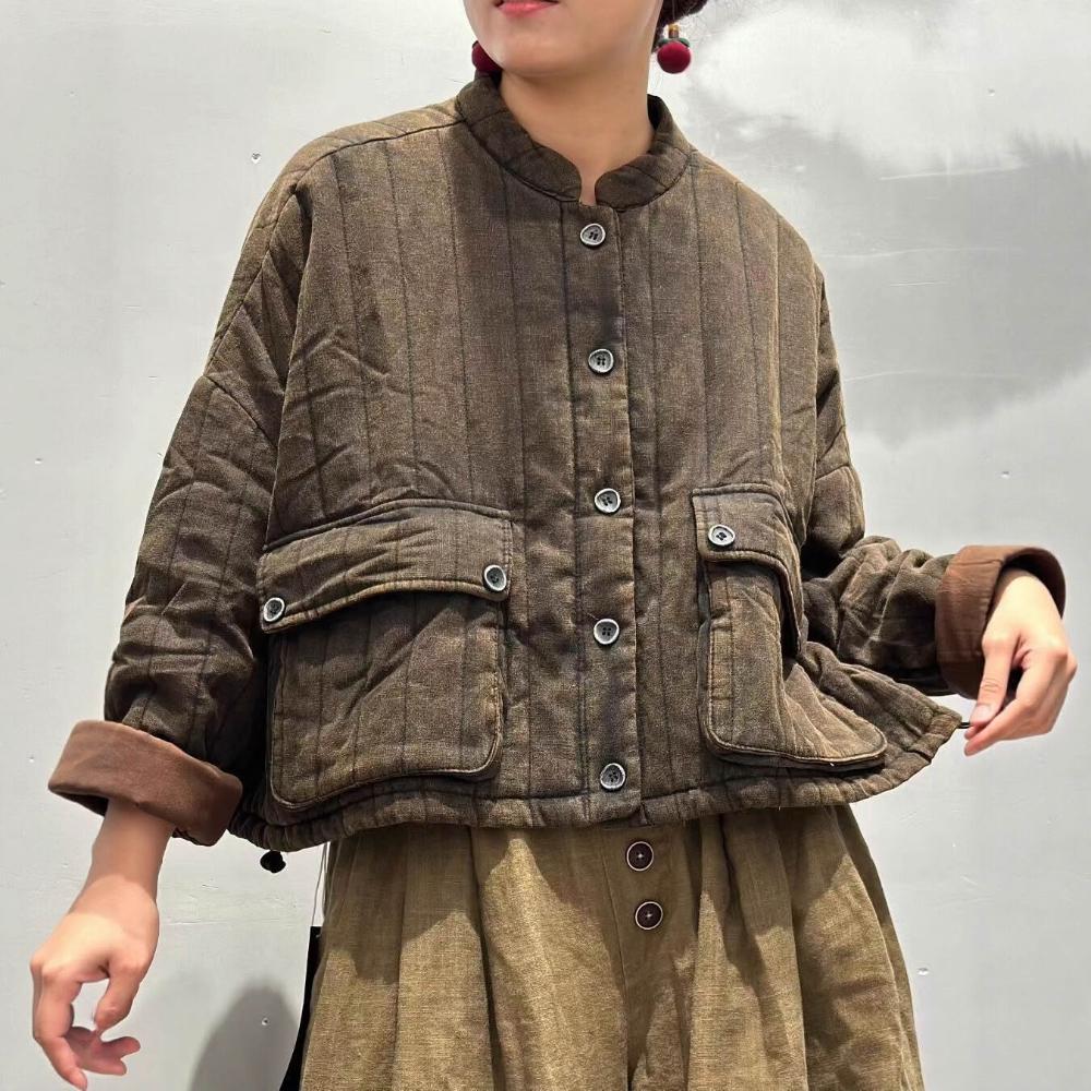 新品復古文藝棉麻炒色做舊新中式棉服短款棉衣夾棉绗縫外套