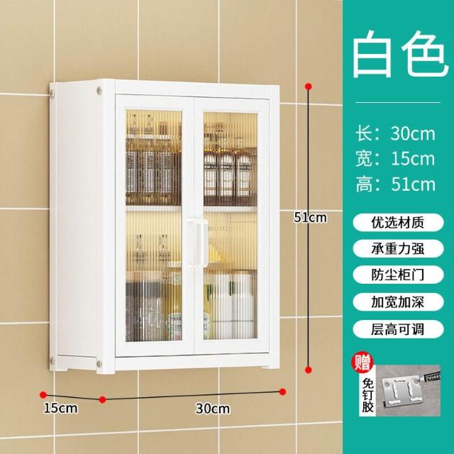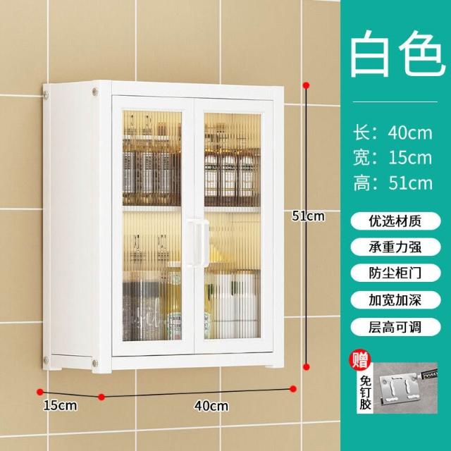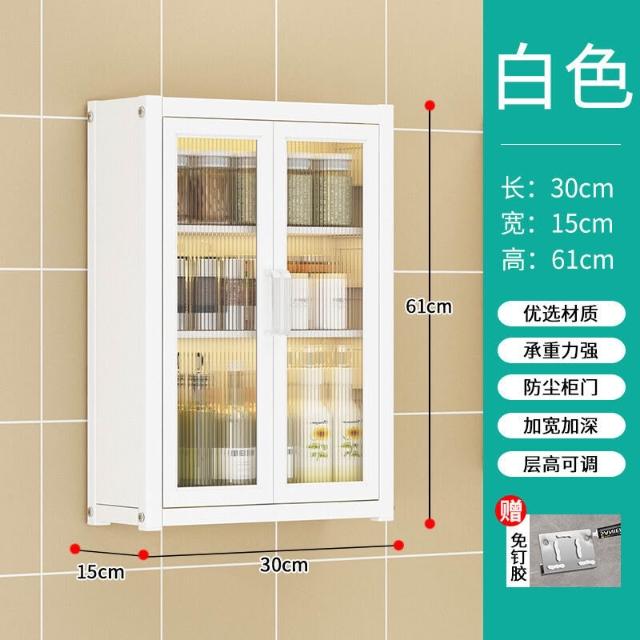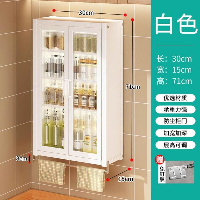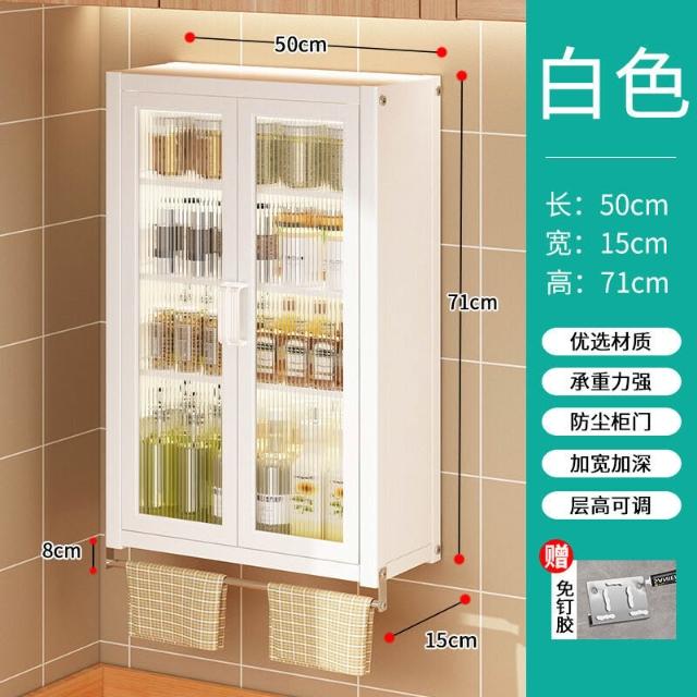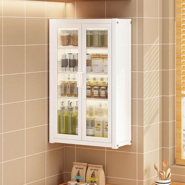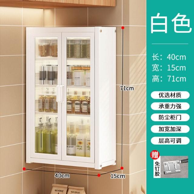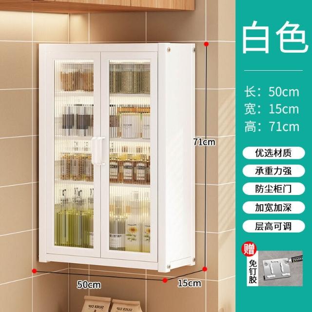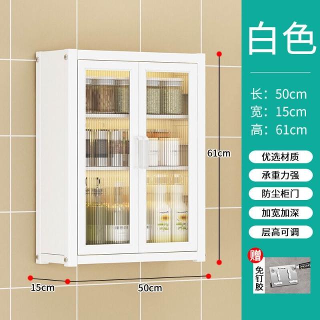 壁掛式墻上免釘廚房置物櫃防塵帶櫃門調料收納架放調味品儲物櫥櫃