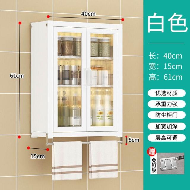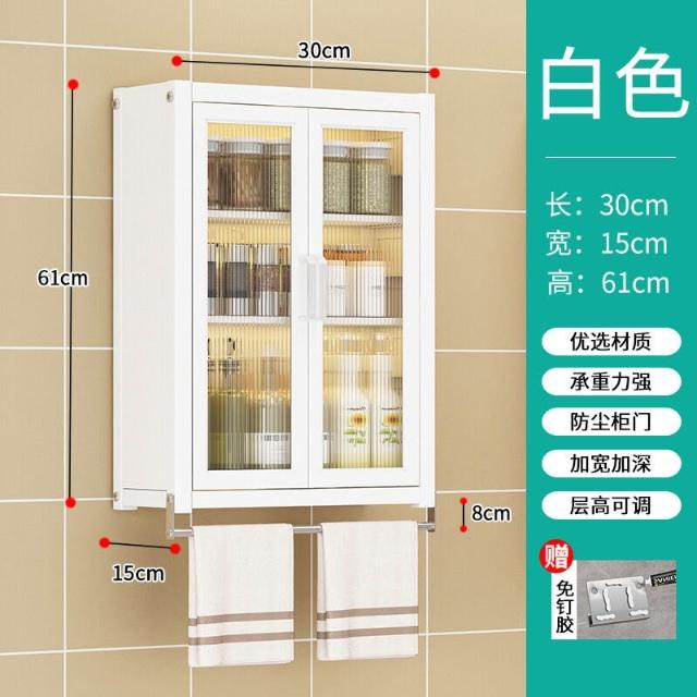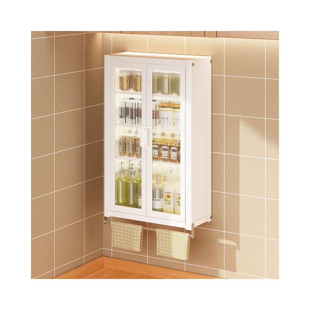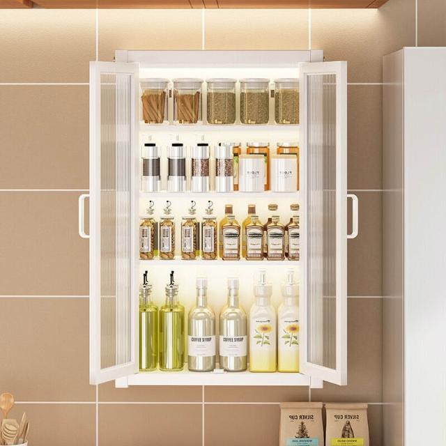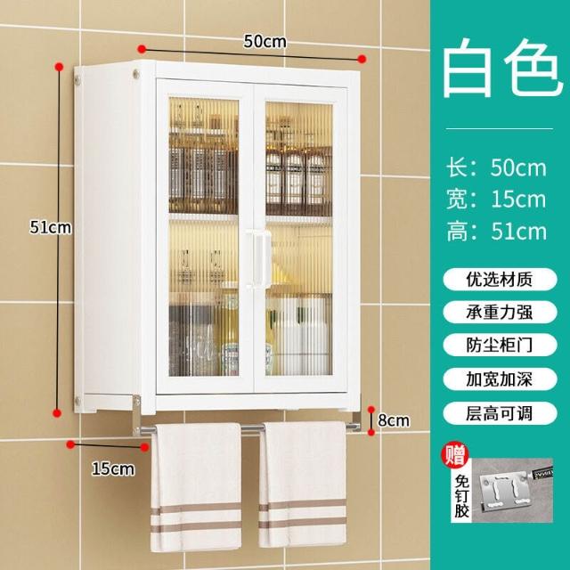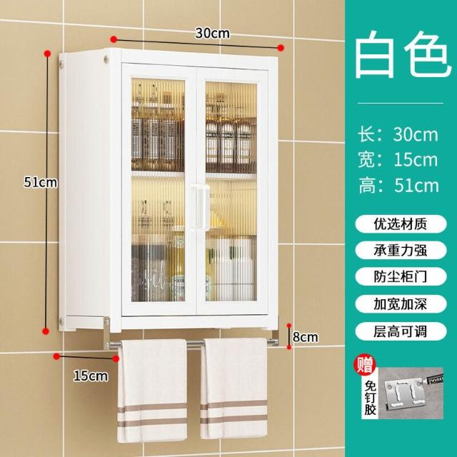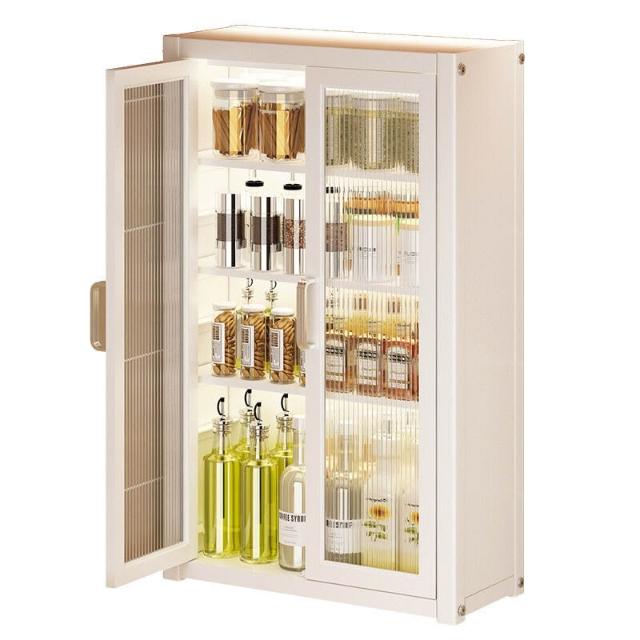 壁掛式墻上免釘廚房置物櫃防塵帶櫃門調料收納架放調味品儲物櫥櫃