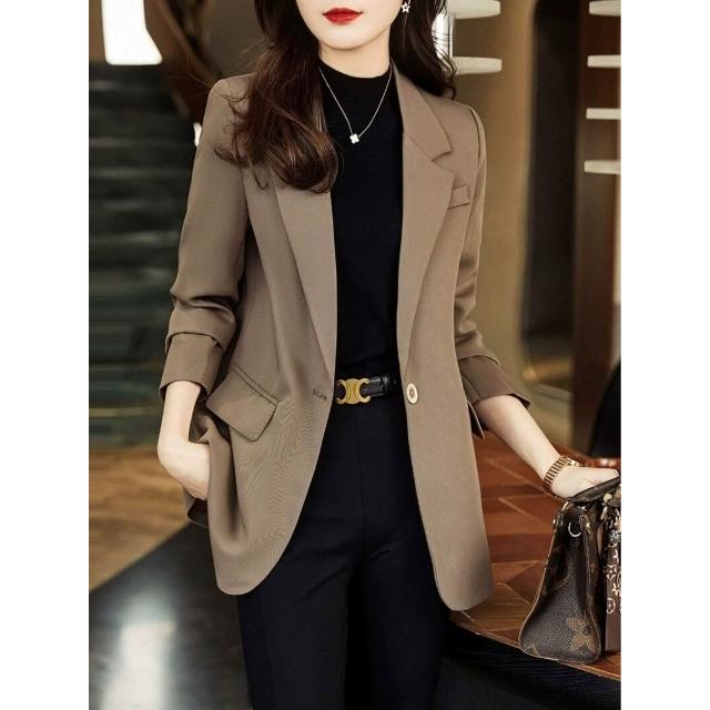 夾棉西裝外套女春秋加厚2025新款休閑韓版高級感女士加棉咖色西服
