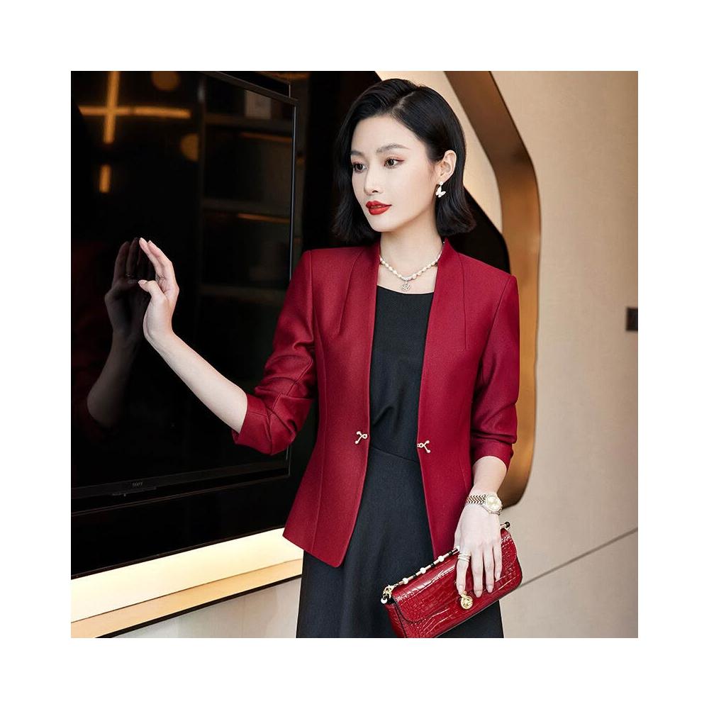 短版西裝外套 休閒小西裝 氣質感西服 緞面西裝 紅色外套 西裝套裝 西服 短款小外套