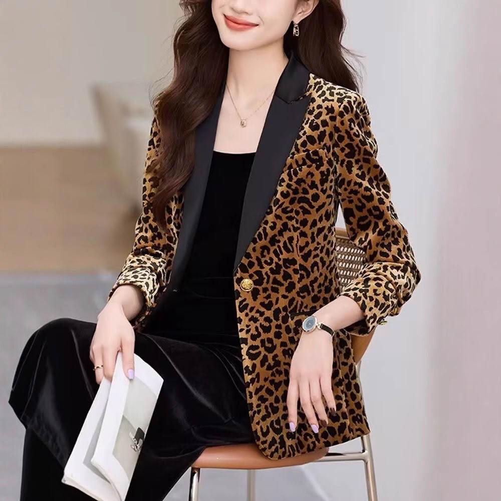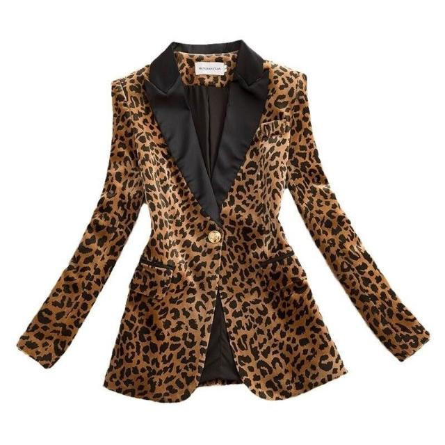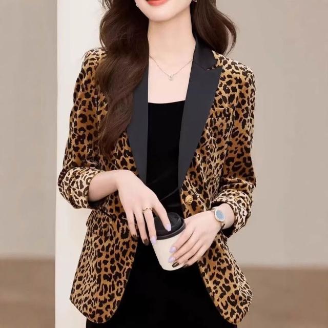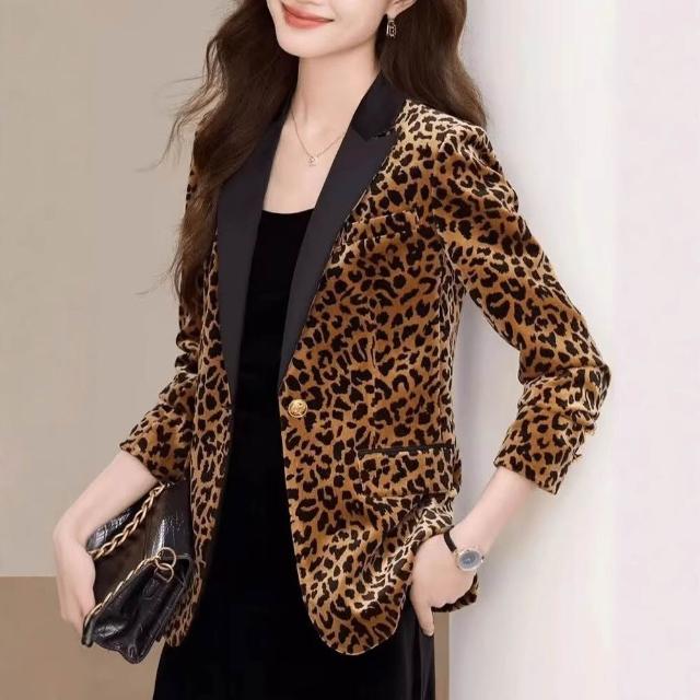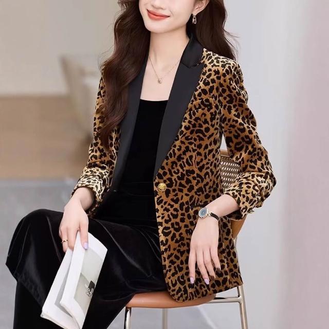金絲絨秋冬豹紋西裝外套女短款新設計感氣質修身百搭高級西服上衣