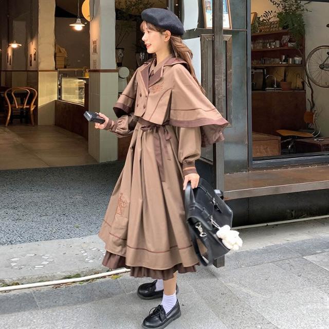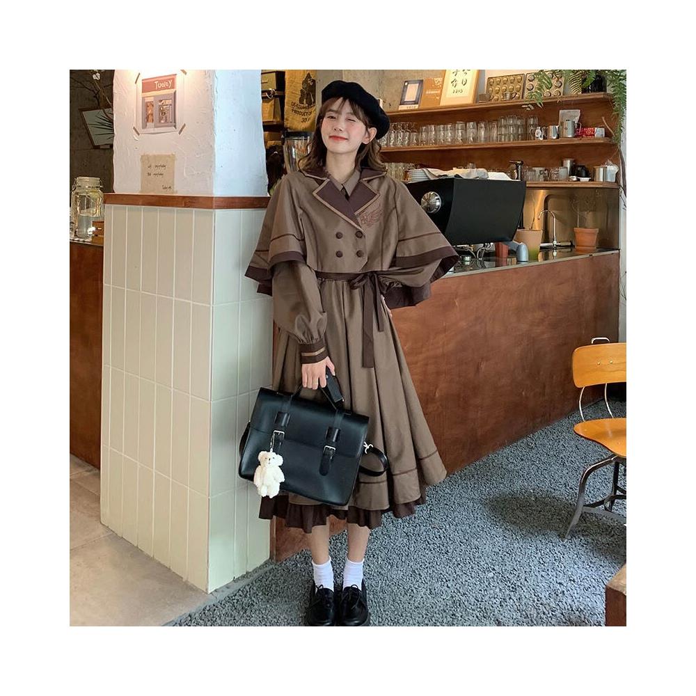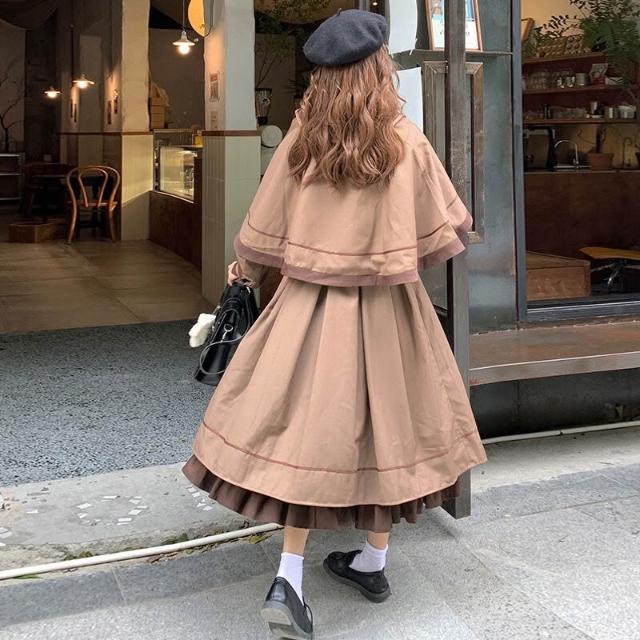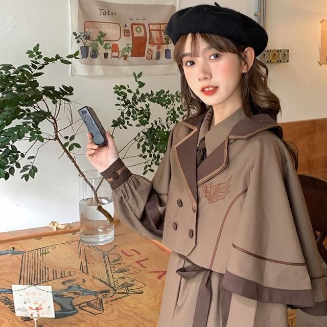 復古日系學院風少女jk連衣裙簡約cla系優雅長裙秋冬lo裙鬥篷套裝