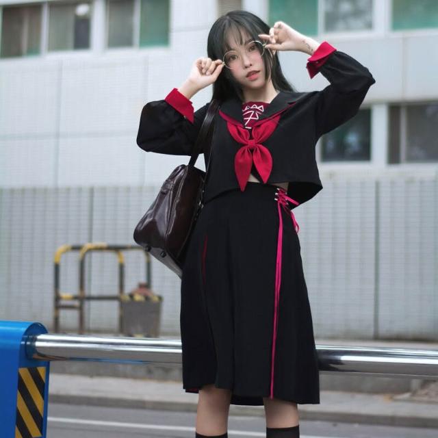 魔法陣日系JK製服學生班服cosplay暗黑水手服長短袖套裝一件代發