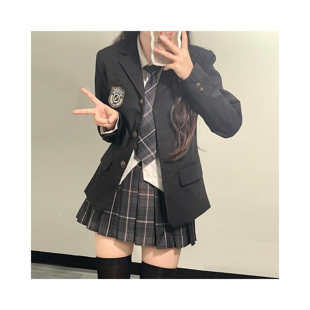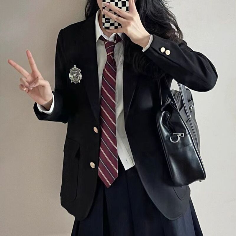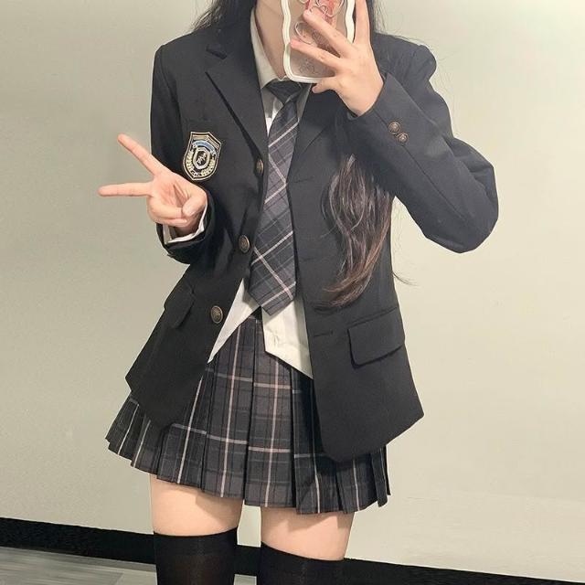 原創jk製服裙西裝外套秋冬季新款學院風绀色西服套裝三件套女