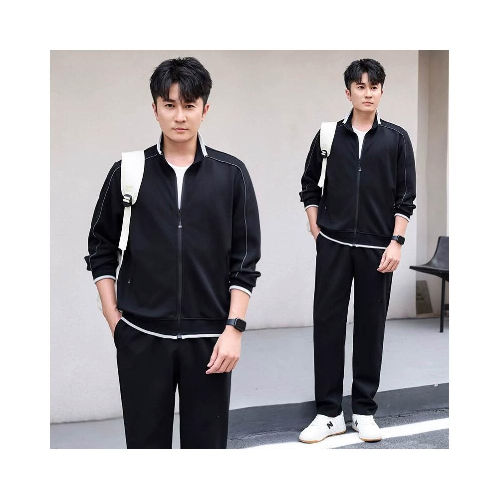 2025新款男士運動套裝春秋休閑跑步服大碼寬松外套長褲百搭爸爸裝