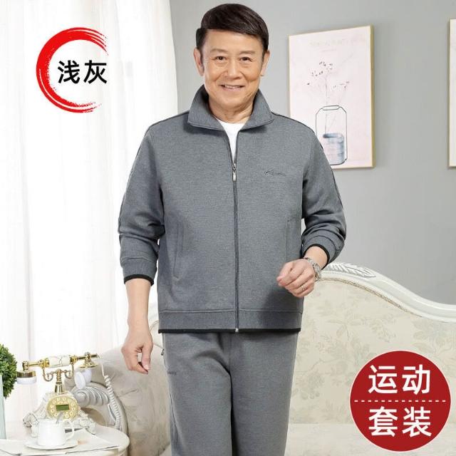 春秋款中老年人男士運動套裝爸爸春裝中年男裝70歲爺爺休閑運動服