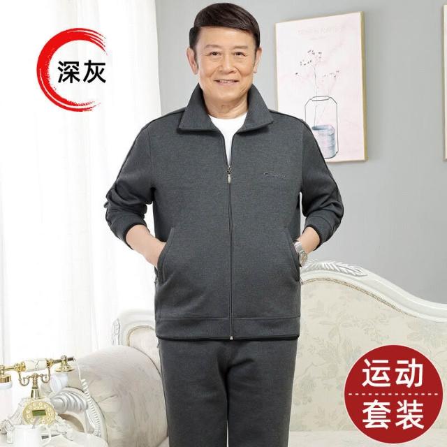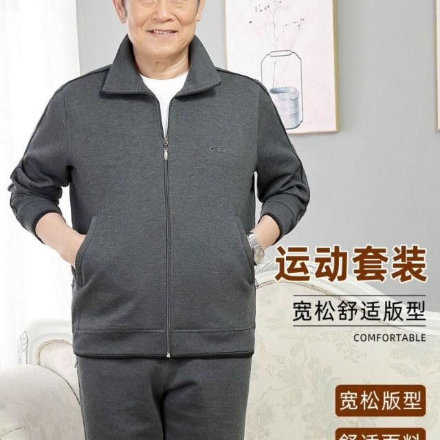春秋款中老年人男士運動套裝爸爸春裝中年男裝70歲爺爺休閑運動服