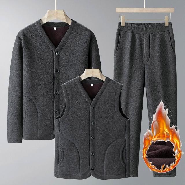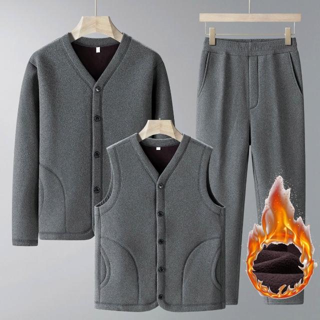 中老年人爸爸套裝男秋冬季新款運動外套加絨加厚保暖休閑三件套
