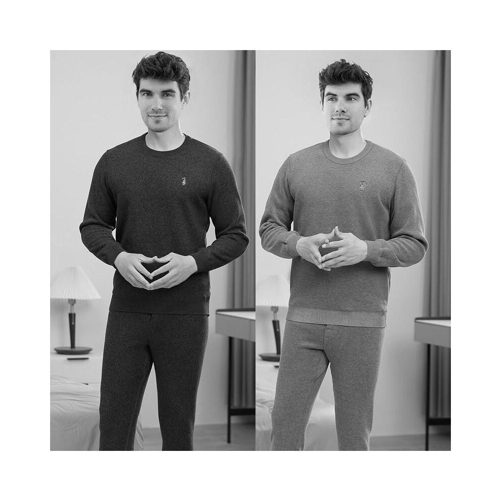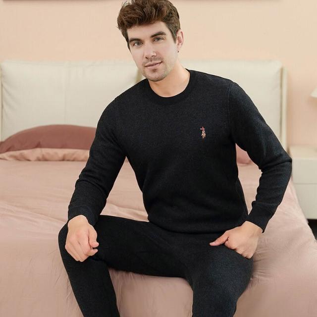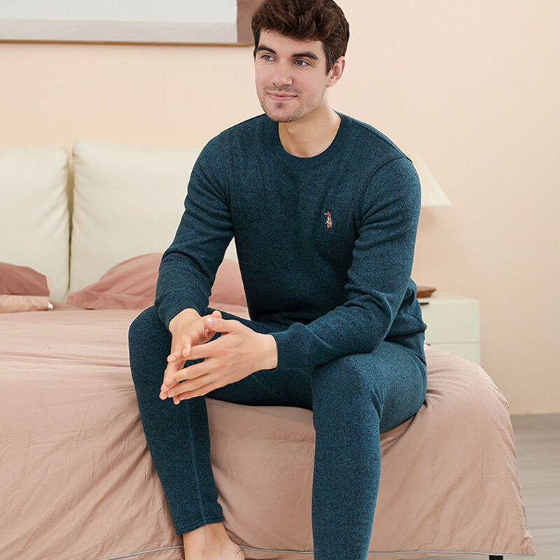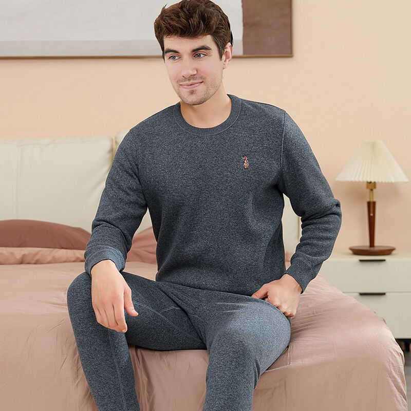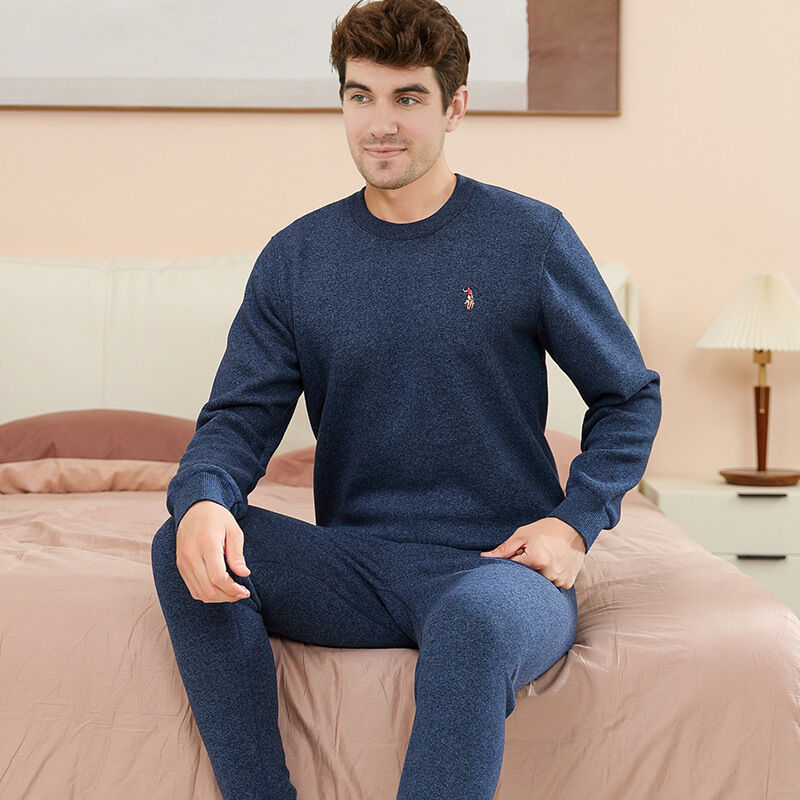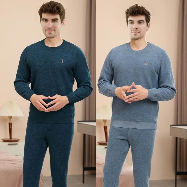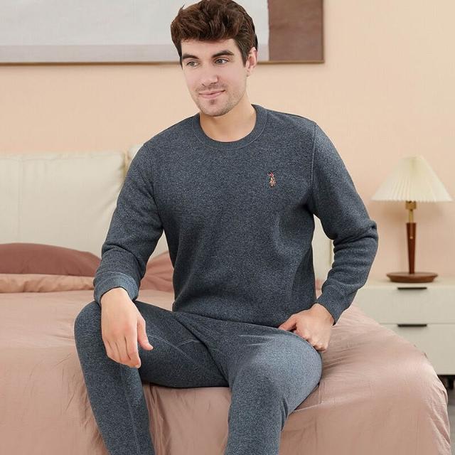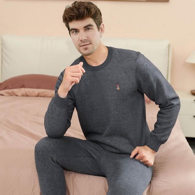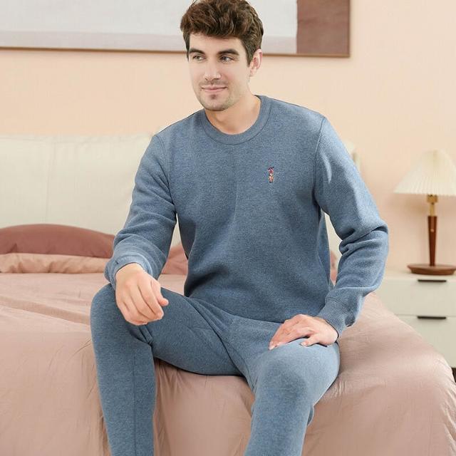 2024保暖內衣男士加絨加厚棉毛衫冬季青中年打底秋衣秋褲套裝批發