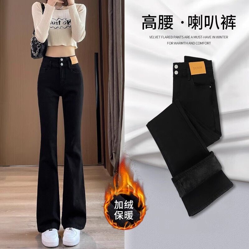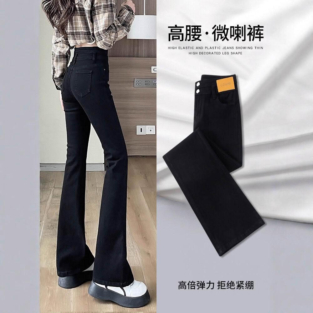 黑色微喇褲女春秋2025年新款爆款緊身高腰顯瘦小個子喇叭牛仔褲子