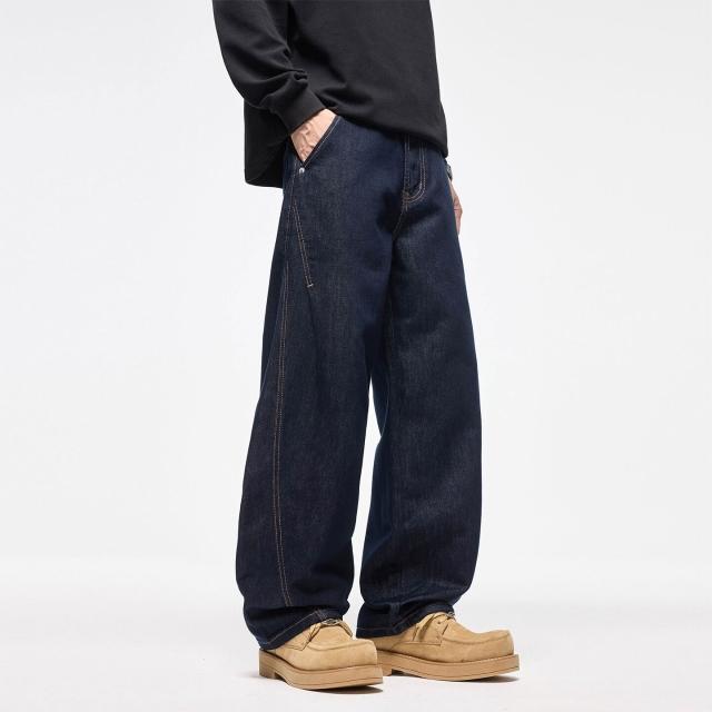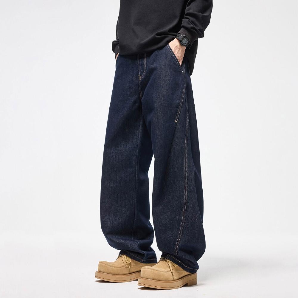 美式復古潮牌深藍彎刀牛仔褲男士2025秋冬新款寬松闊腿休閑長褲子