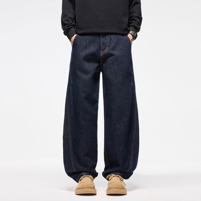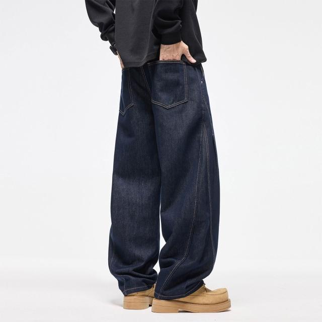美式復古潮牌深藍彎刀牛仔褲男士2025秋冬新款寬松闊腿休閑長褲子