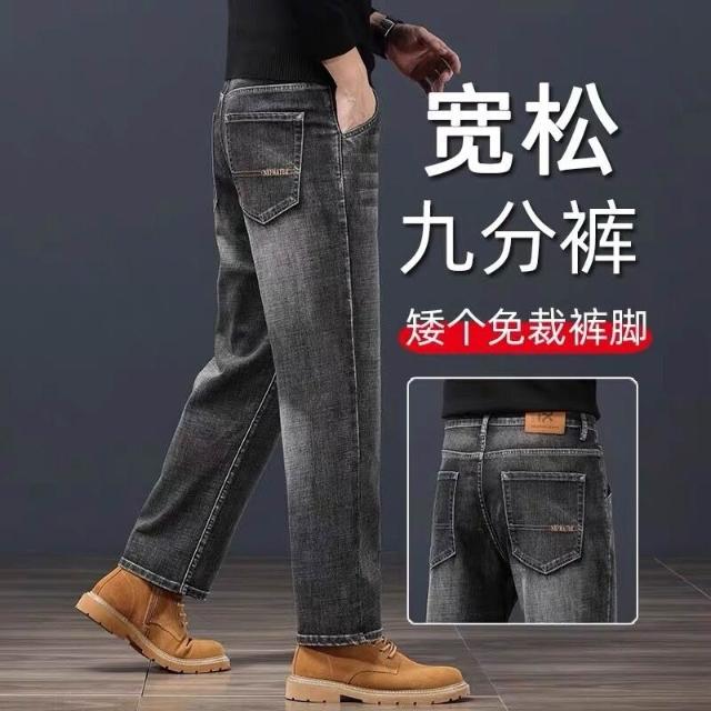 2025新款矮個子九分褲闊腿牛仔褲男士寬松直筒春秋款中年休閑長褲