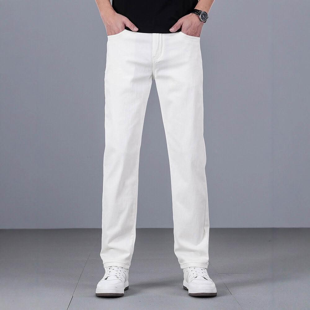白色純棉牛仔褲男士寬松直筒2025春夏新款中年男褲子彈力休閑長褲